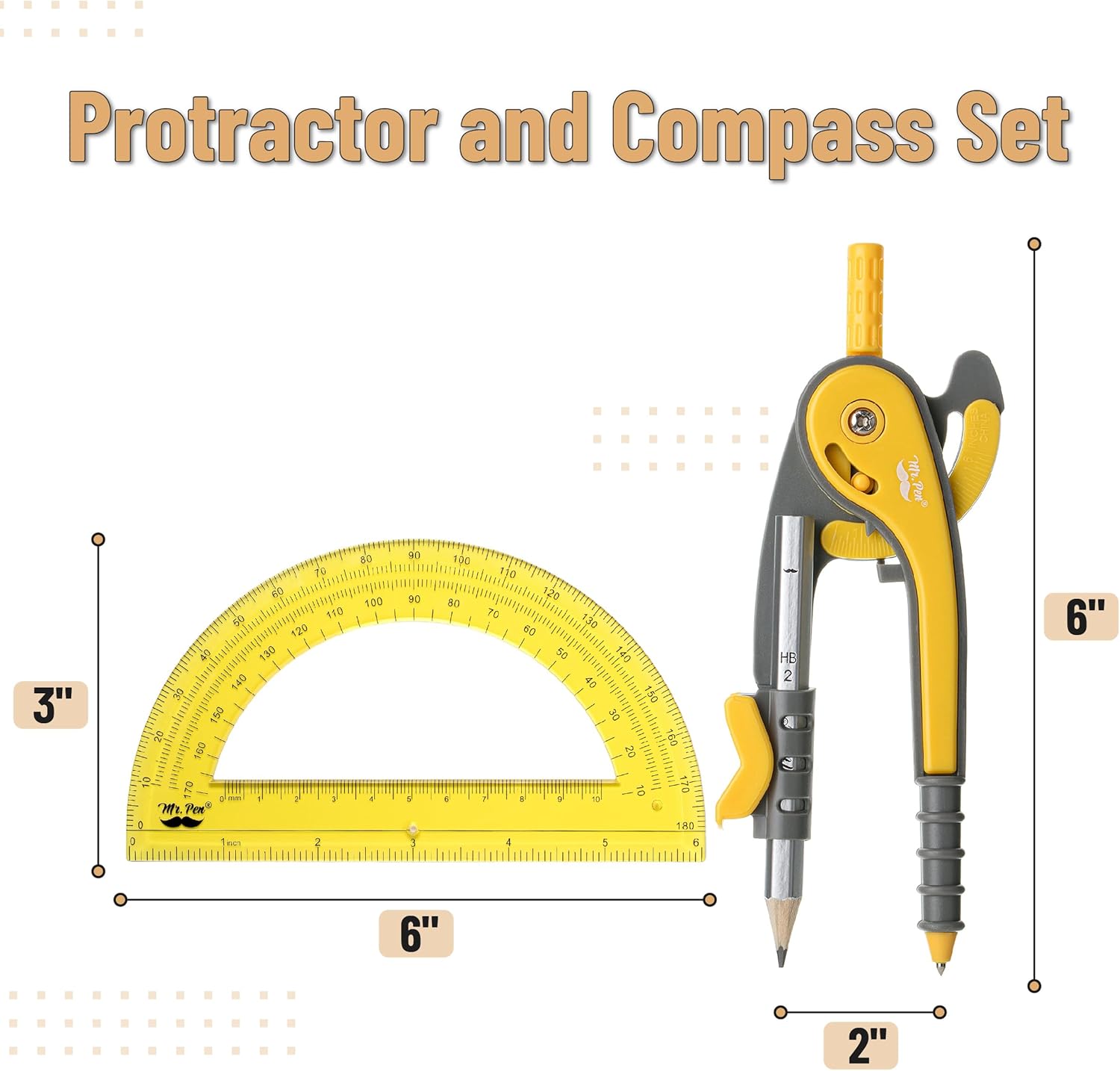 Mr. Pen- Compass and Protractor Set, Yellow, Compass Geometry Tool, Protractor and Compass Set, Compass Drawing Tool, Drawing Compass, Geometry Compass, Math Compass for Geometry