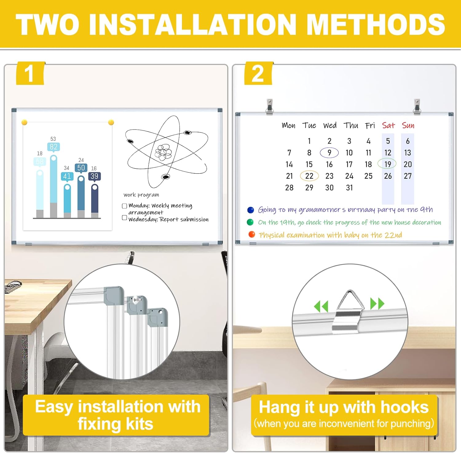 - 【Complete Set】Included in this set are 1 whiteboard, 1 detachable aluminum marker tray, 6 markers, 12 magnets and 2 erasers, offering all the necessary accessories for immediate use.