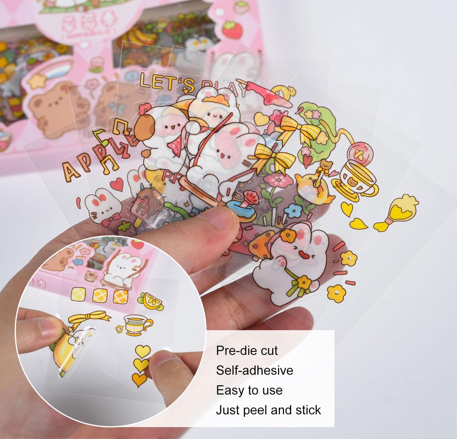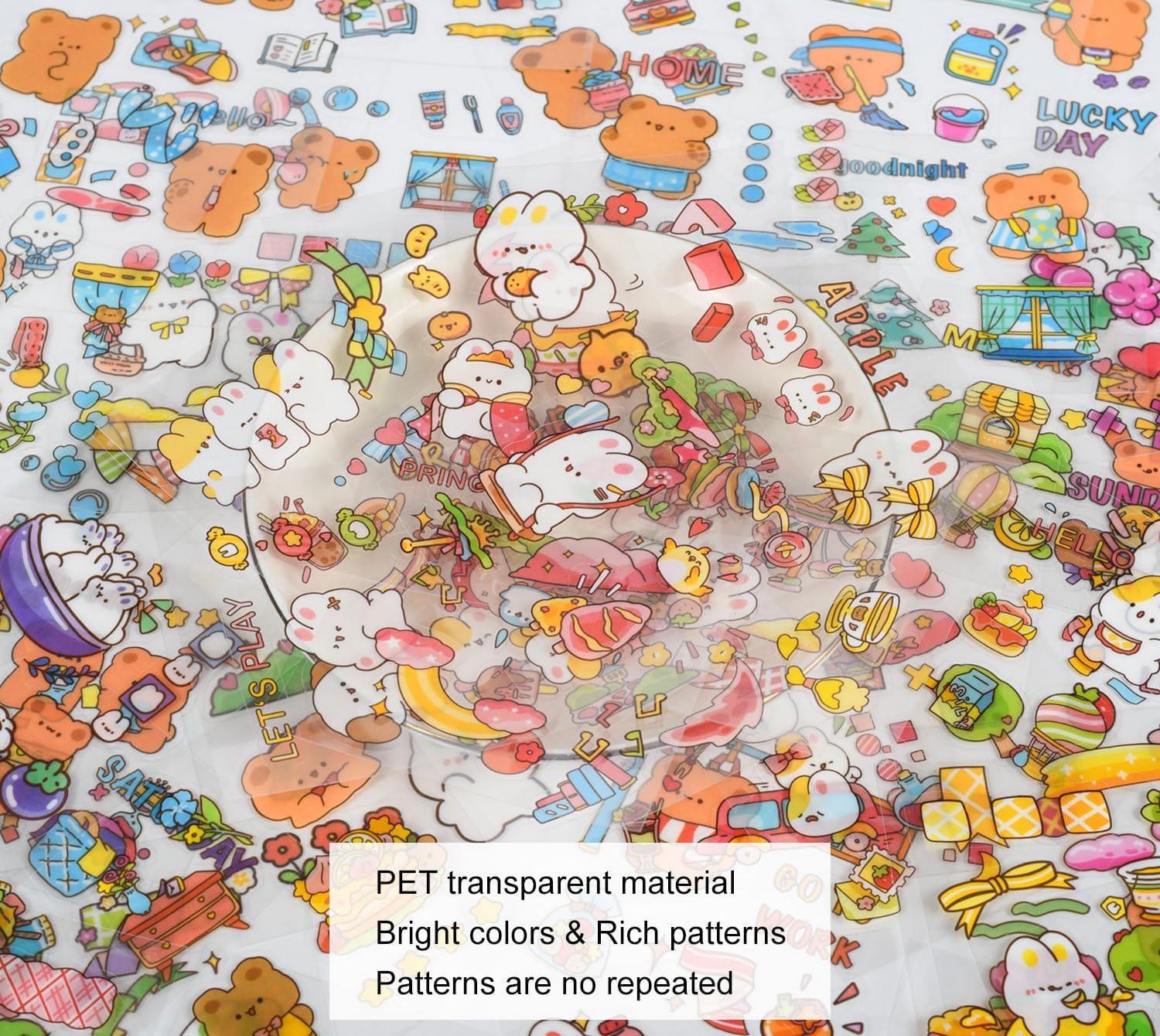 - â LOVELY DESIGN - Adorable cartoon daily life stickers have a unique and pretty pattern design without repeating. The theme revolves around the friend between rabbits and bears.The gift box is stored separately, neat and beautiful. You can freely DIY to bring you different ideas and different moods, suitable for children and adults.