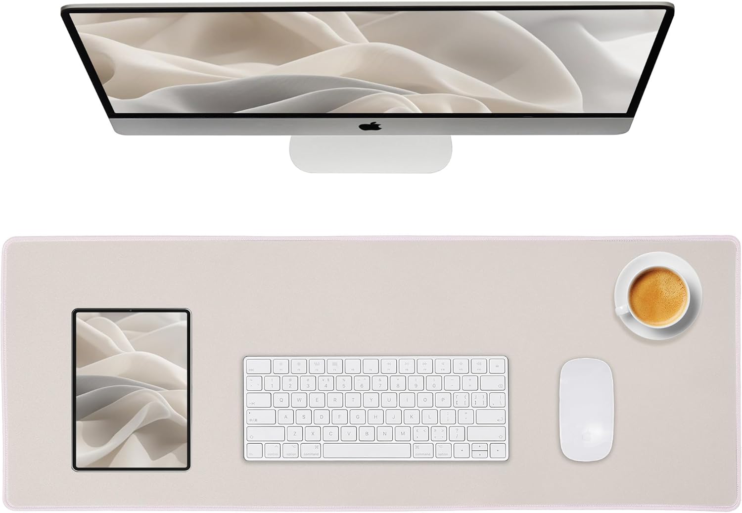 Waterproof Large Gaming Mouse Pad with Durable Stitched Edges, Non-Slip Rubber Base, Smooth Surface Mouse Mat Desk Pad for Home Office Gaming, 27.5"x11.8"x0.08", Beige