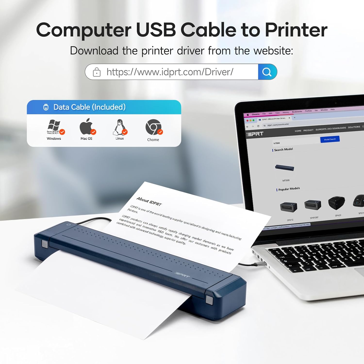 - ăPORTABLE WIRELESS PRINTERăiDPRT MT888 Mobile Bluetooth Printer is a portable wireless printer, weighing only 2 pounds, with a size of 12.2 inches x 2.5 inches x 1.56 inches, very light and portable, and can be easily put into a handbag or briefcase. It can print anywhere to meet the user's various printing needs, whether it is travel, business trip, school, car, home or office, it is a reliable companion.