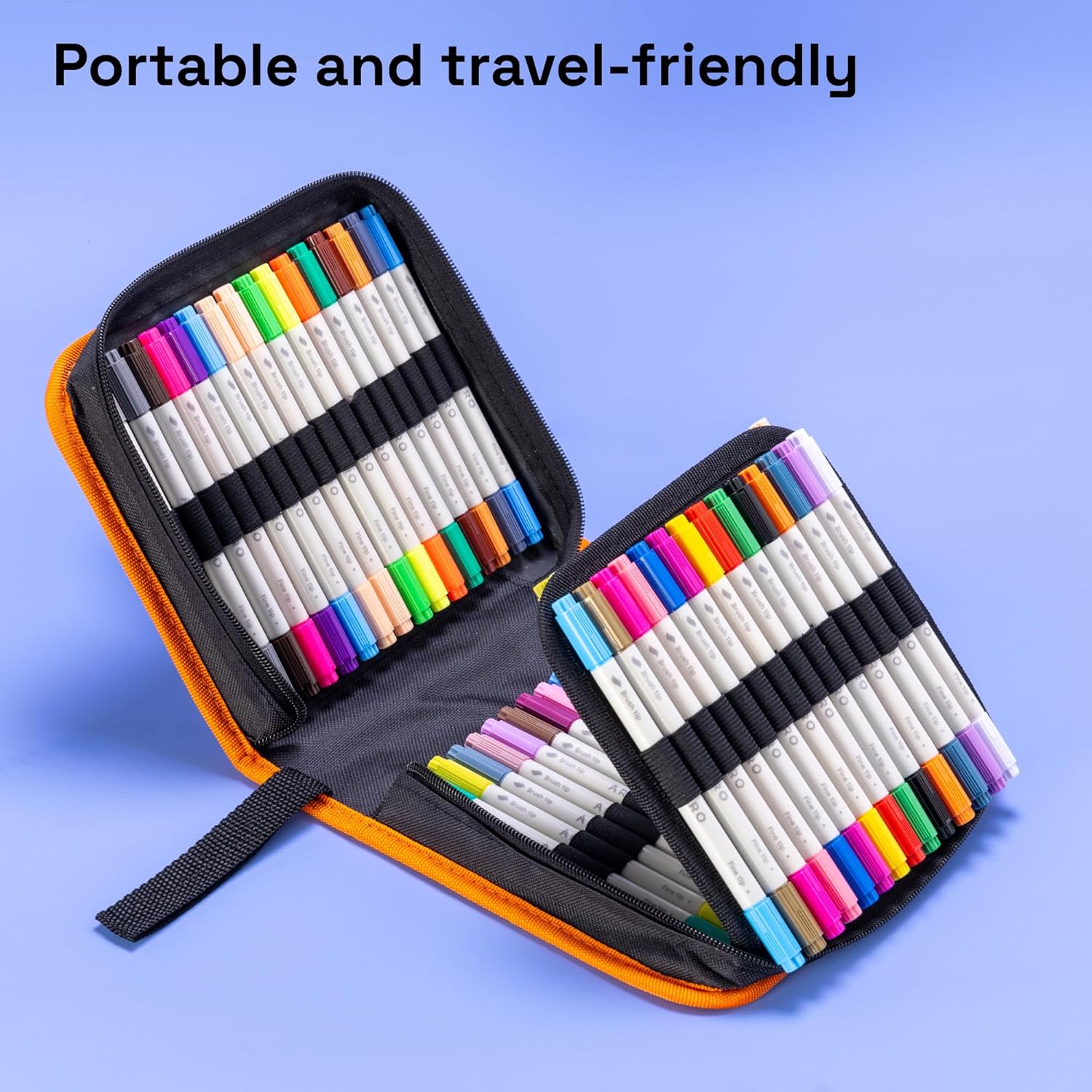 ARTISTRO 60 Dual Tip Fabric Markers - Acrylic Drawing Markers for All Ages & Levels - Fabric Paint Pens for Personalizing Clothes, T Shirts, Bags, Canvas, Textiles (Brush + Fine)