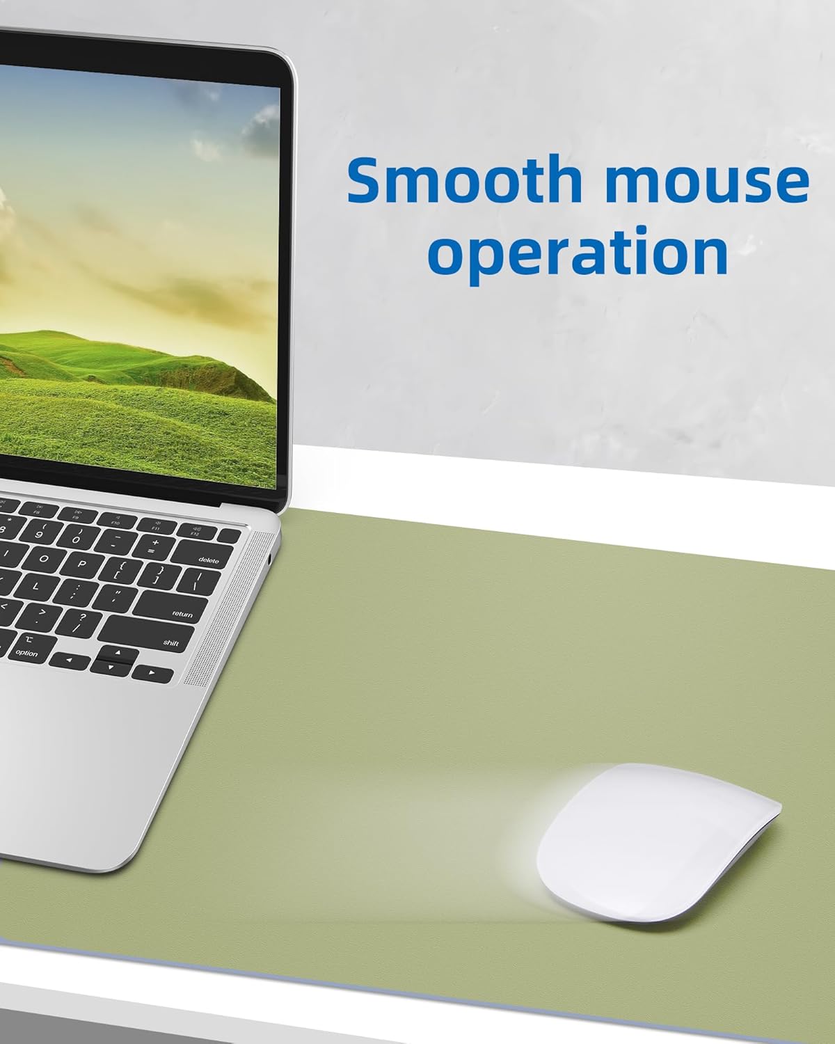 AFIING Leather Desk Pad Protector,Mouse Pad,Office Desk Mat, Non-Slip PU Leather Desk Blotter,Large Desk mat,Waterproof Keyboard mat for Office/Home/Decor (Olive Green,55"" x 17"")