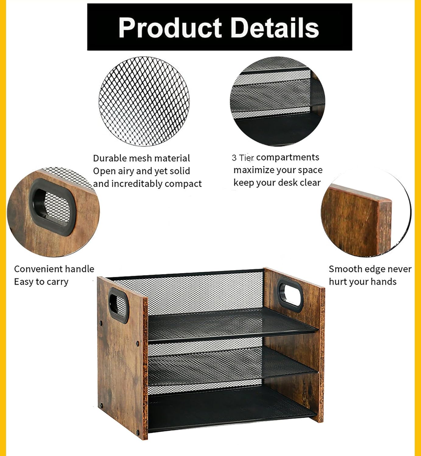 - 【Wooden Desk Organizer】 Made of iron frame and durable wood boards, ensuring long-lasting durability. Enjoy a clutter-free and efficient workspace with our paper organizer storage. The different compartments and trays provide ample space for different categories, allowing for easy access to your important documents.
