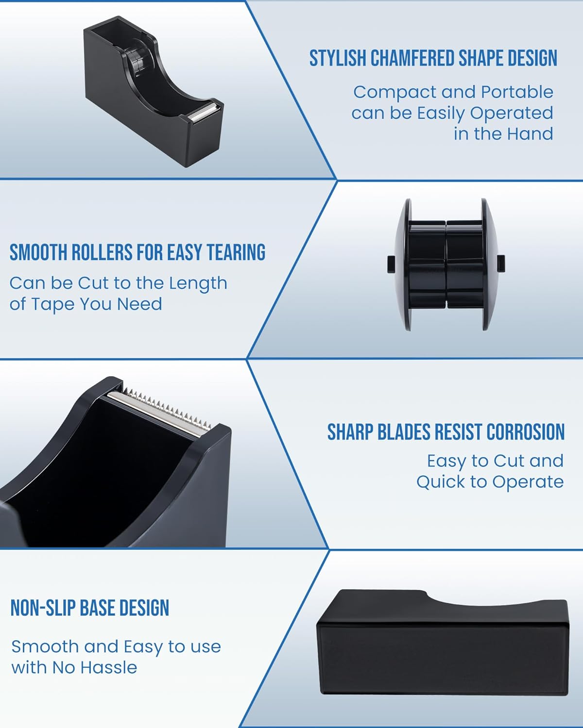 - DURABLE DISPENSER: Durable tape dispenser made of impact-resistant plastic for long lasting strength, High quality cutting blade lasts for years