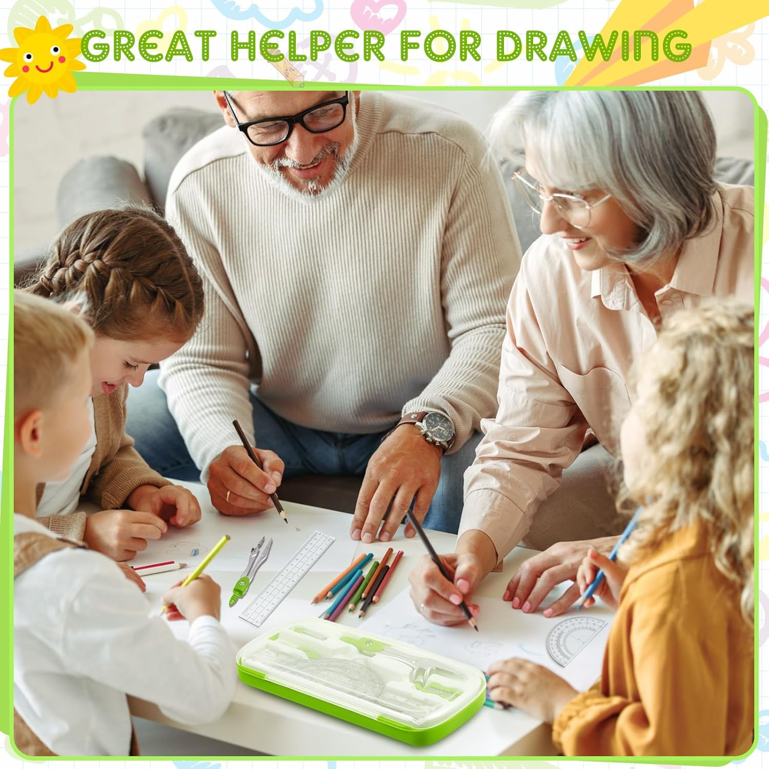Teling 12 Sets Math Geometry Kit for Students 10 Pcs Compass Geometry Tools Set Includes Rulers Protractor Compass Eraser Pencil Sharpener Lead Refills Pencil (Green)