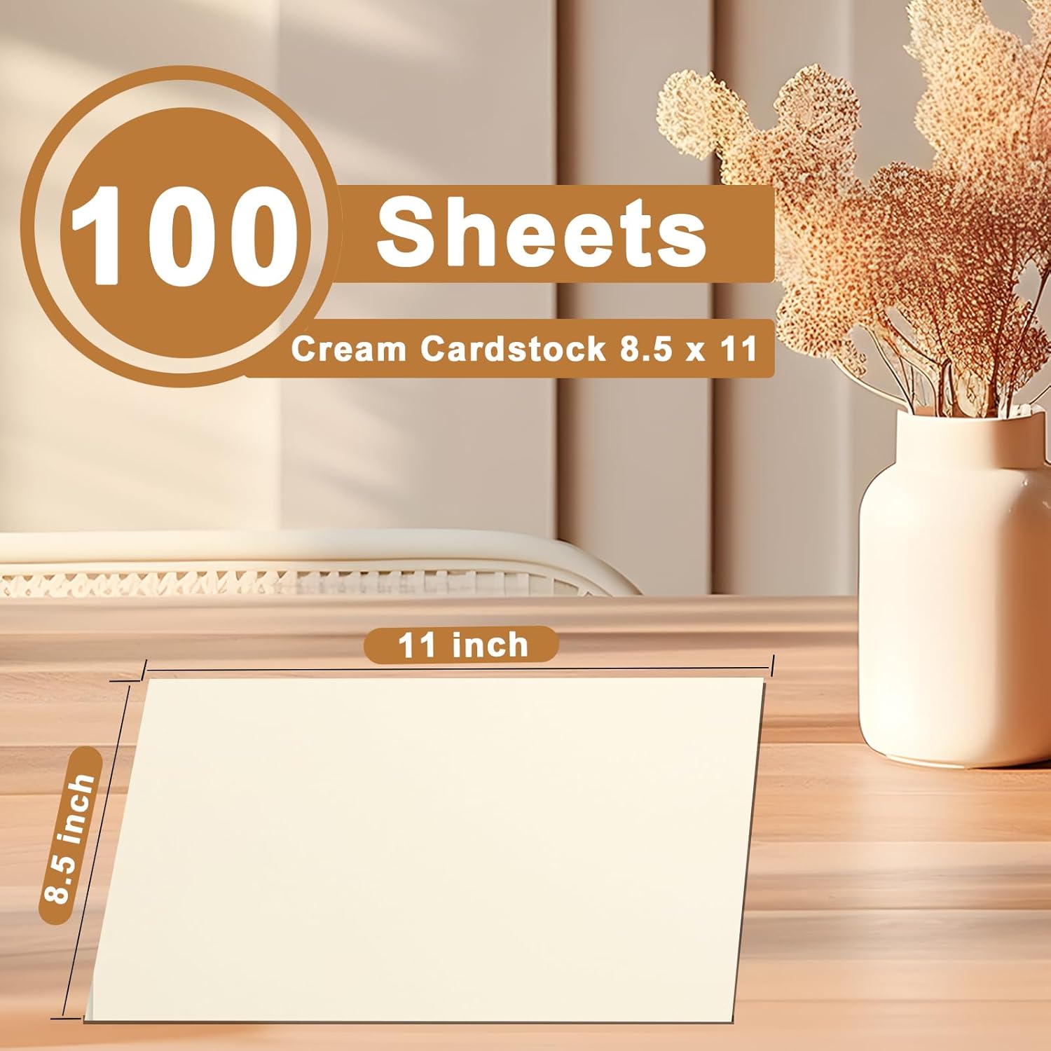 100 Sheets Cream Cardstock 8.5 x 11 Ivory Paper, 200gsm/75lb Off White Paper Card Stock for DIY Cards Making, Greeting Card, Business Cards, School Crafting, Menus, Certificates