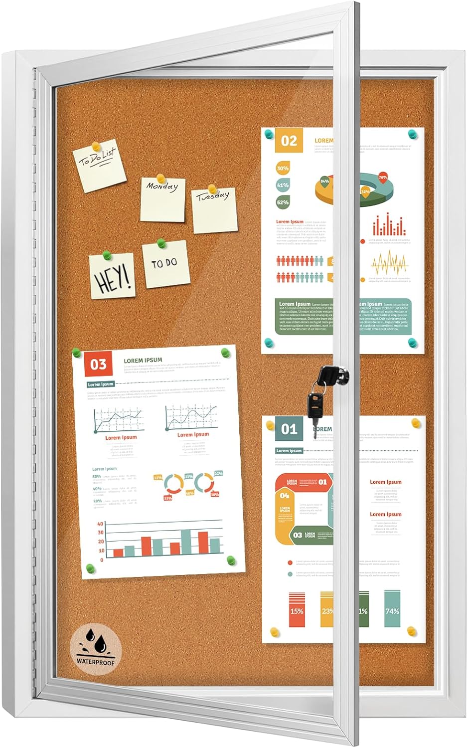 - Self-Healing Enclosed Bulletin Board with Lockable Glass Doors: Made of premium dense cork, this enclosed cork board offers self-healing pin board performance. Ideal for offices, schools, or homes needing a durable, smooth bulletin board that stays flawless.