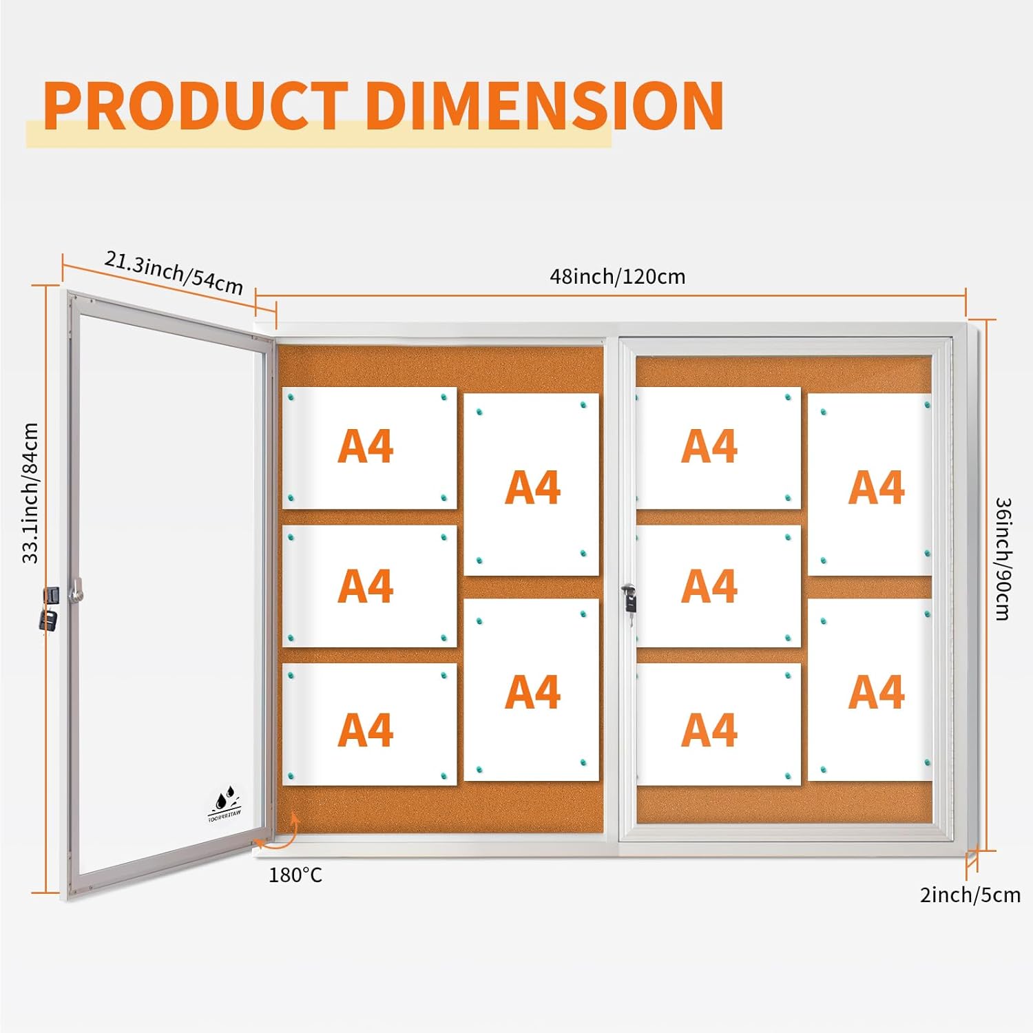 - Self-Healing Cork: Crafted from high-quality dense cork, our enclosed bulletin board boasts exceptional self-healing abilities and repair-ability. Experience the convenience of automatic recovery from pin or tack holes, ensuring a consistently smooth and neat surface. Bid farewell to unsightly pinholes and elevate your display with a professional finish.