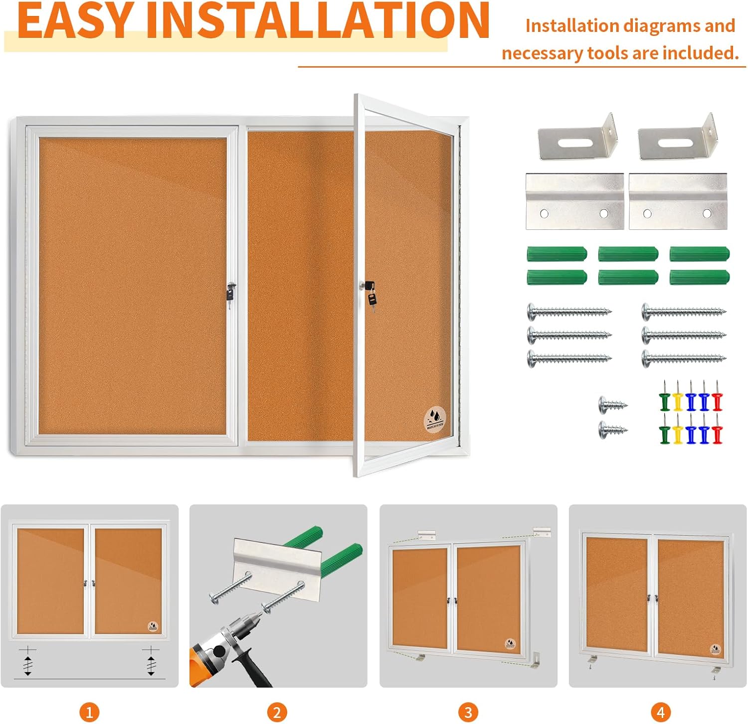 - Effortless Installation: With its user-friendly design and comprehensive mounting tools, setting up our enclosed bulletin board is a breeze. Measuring 44x32 inches, it fits seamlessly into any space for added flexibility and convenience.