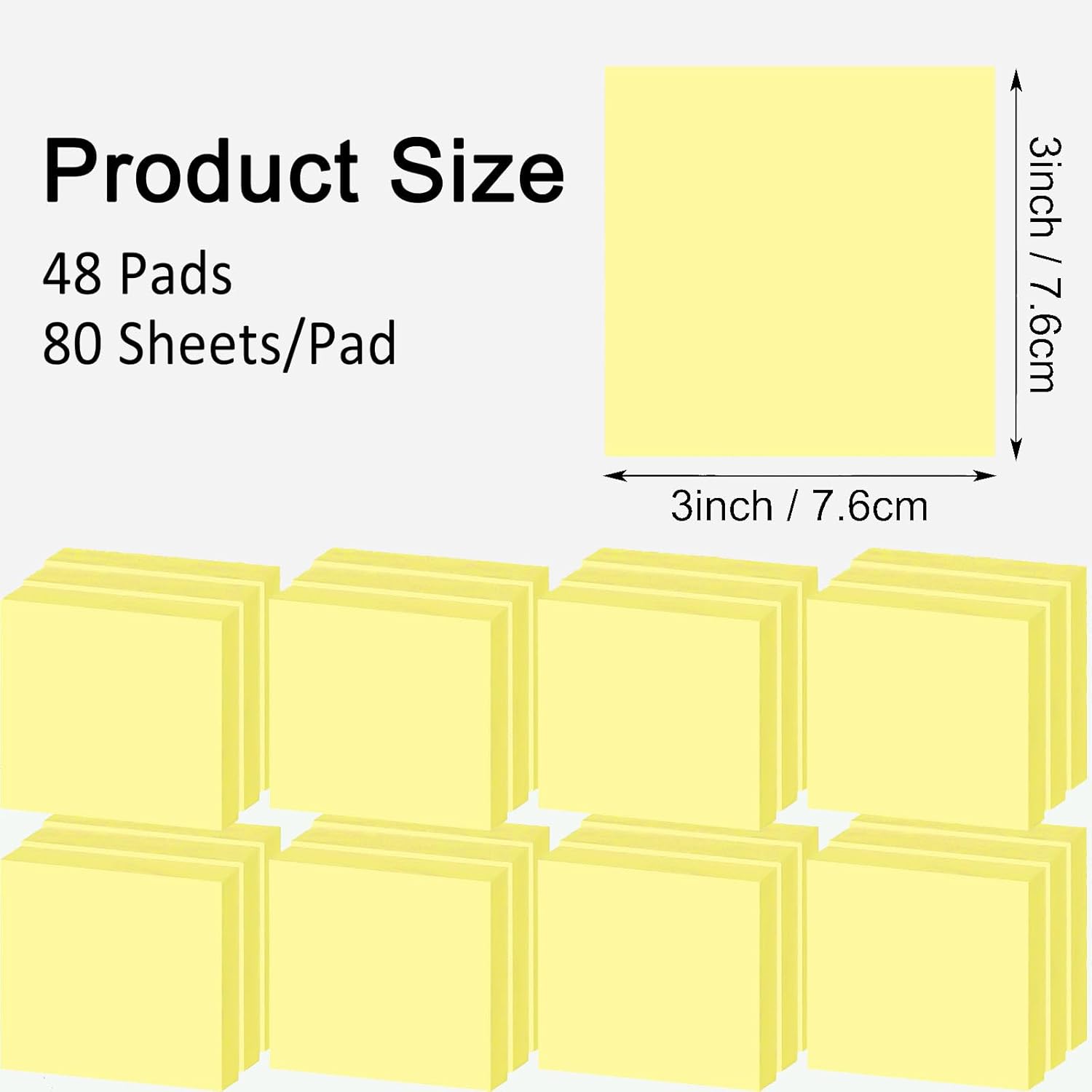 48 Pack 3840 Sheets Pop Up Sticky Notes 3X3 in Bright Color Self Sticky Note Pads Colorful Post Stickies for Office Home School Meeting, 80 Sheets/pad, Yellow