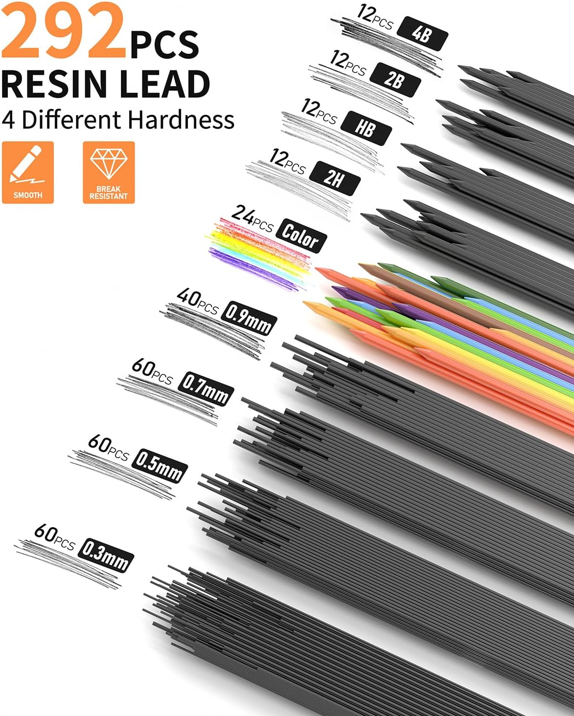 - 24 PCS Colored Lead: Provides a rich variety of colors suitable for various drawing and coloring projects. multiple colored pencil leads can inspire creativity, allowing users to experiment with new color combinations and artistic effects.