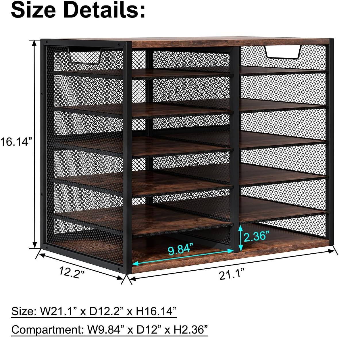 PAG Mass Mail Sorter - Adjustable Mail Holder, Countertop Literature Organizer, Student Mailbox for Classroom, Desktop Bill Paper Organizer for Office Home School, 12 Compartments, Brown