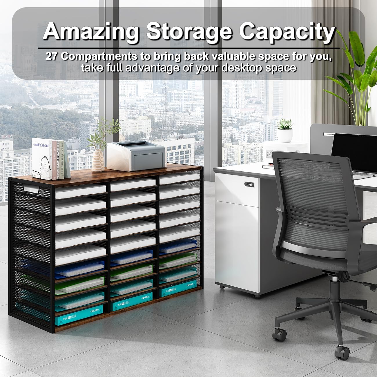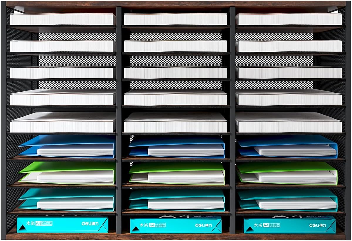 - ▶Amazing Storage Capacity and Space-saving. The literature organizer has 27 compartments, which can help you sort, store and organize literature, magazines, comic books, files, student assignments, binders, catalogs, diaries, papers and documents on your desk or counter quickly and easily and get you valuable workspace back