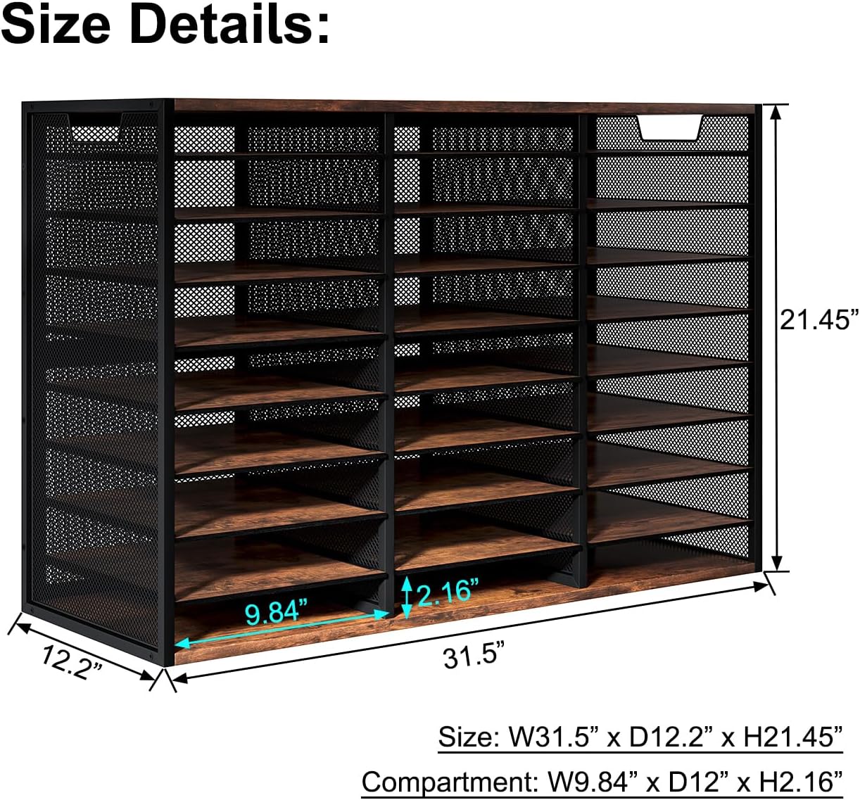 PAG Mass Mail Sorter - Adjustable Mail Holder, Countertop Literature Organizer, Student Mailbox for Classroom, Desktop Bill Paper Organizer for Office & Home, 27 Compartments, Brown