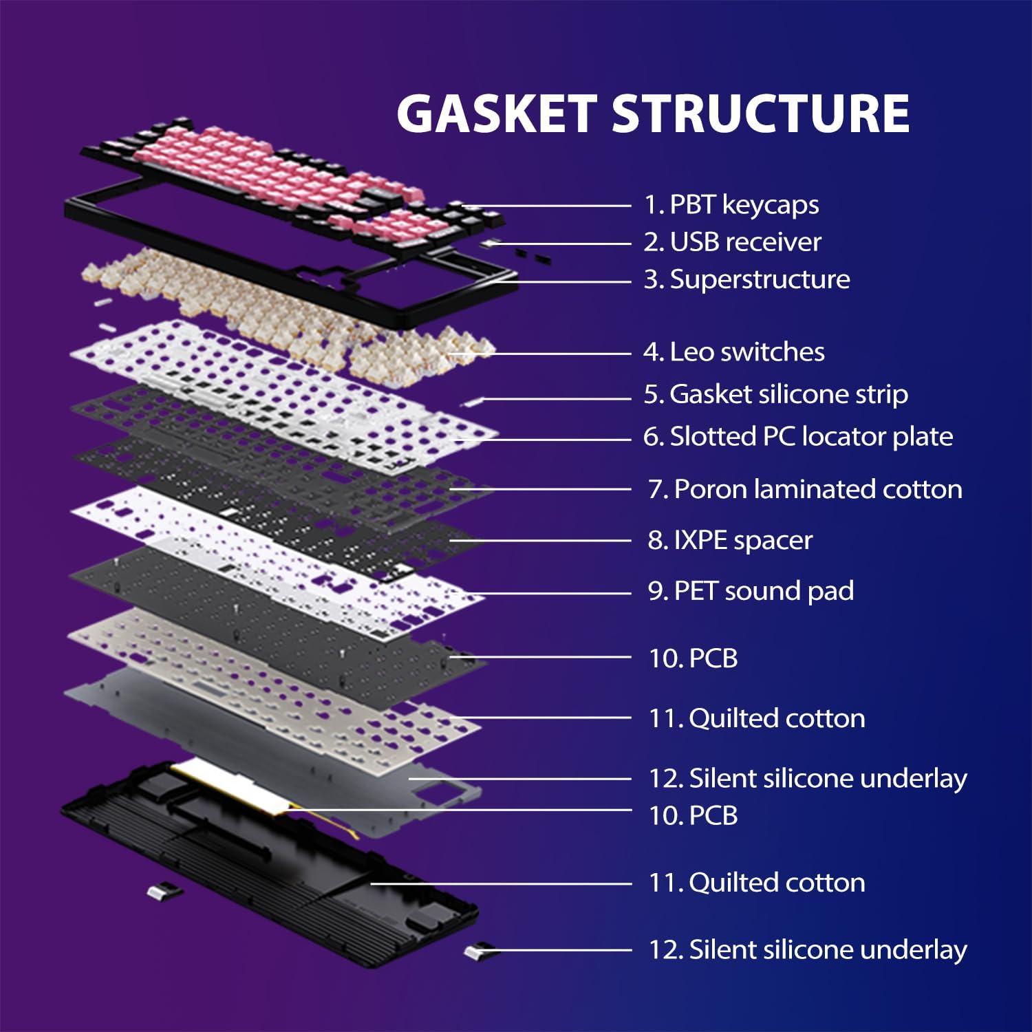 - Pleasant Typing Experience: Thanks to the unique design of the Gasket Structure, this pink gaming keyboard produces a more pleasing sound when struck, allowing you to enjoy more pleasant acoustic feedback during typing and enhancing your typing experience.The bluetooth gaming keyboard is equipped with a dual-height stand, so you can easily adjust the comfortable height to suit your personal habits.