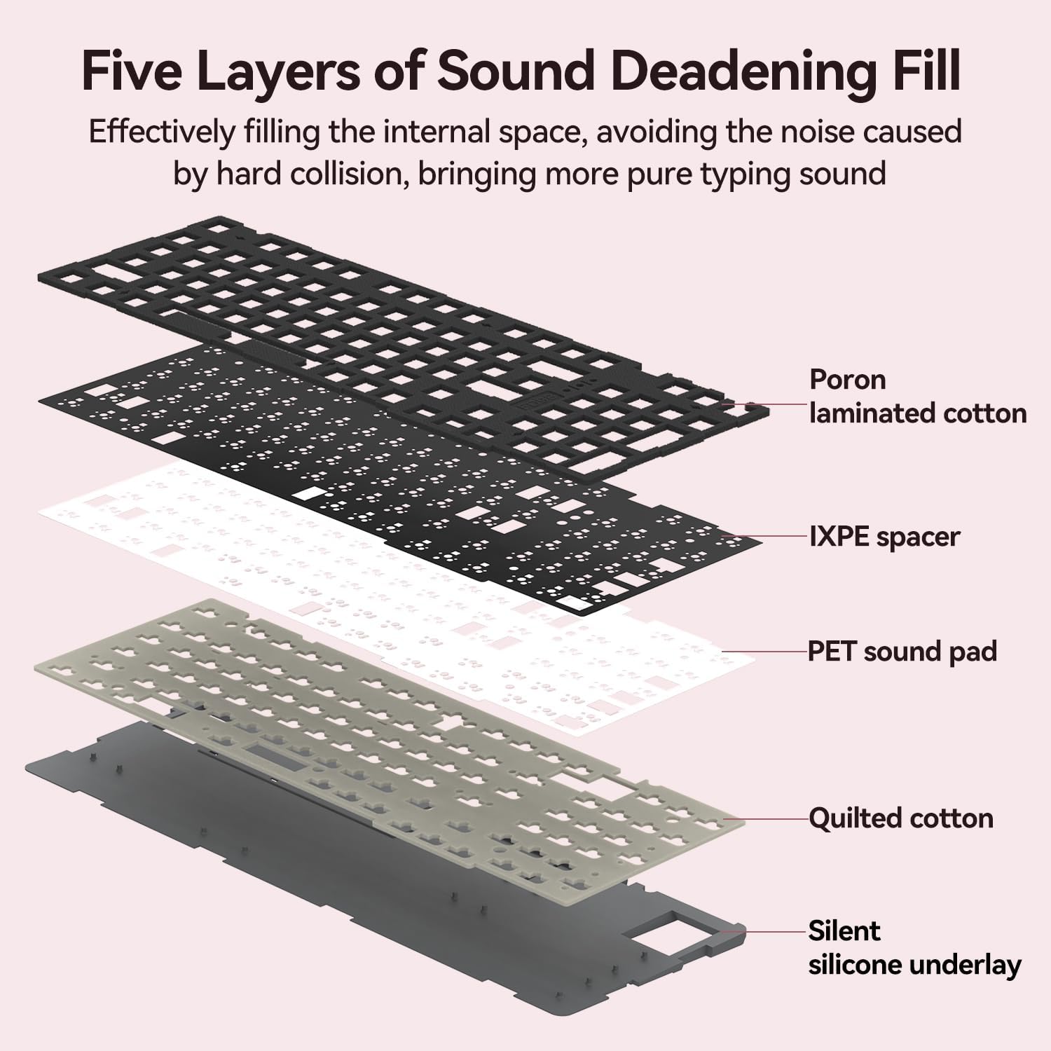 - Slient Design: This quiet mechanical keyboard adopts gasket structure with 5 layers of acoustic padding to bring you an unprecedented silent typing experience for a truly silent office