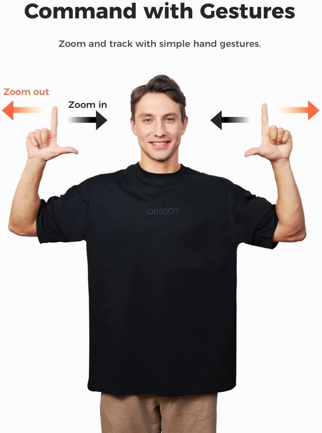 - ăDynamic Gesture Controlă Along with the 2.0 dynamic gesture control, our streaming camera says goodbye to cumbersome manual operation. Simply face the web cam, make an âđâ gesture to lock the portrait tracking target, and make an âđâ gesture to control the zoom easily.