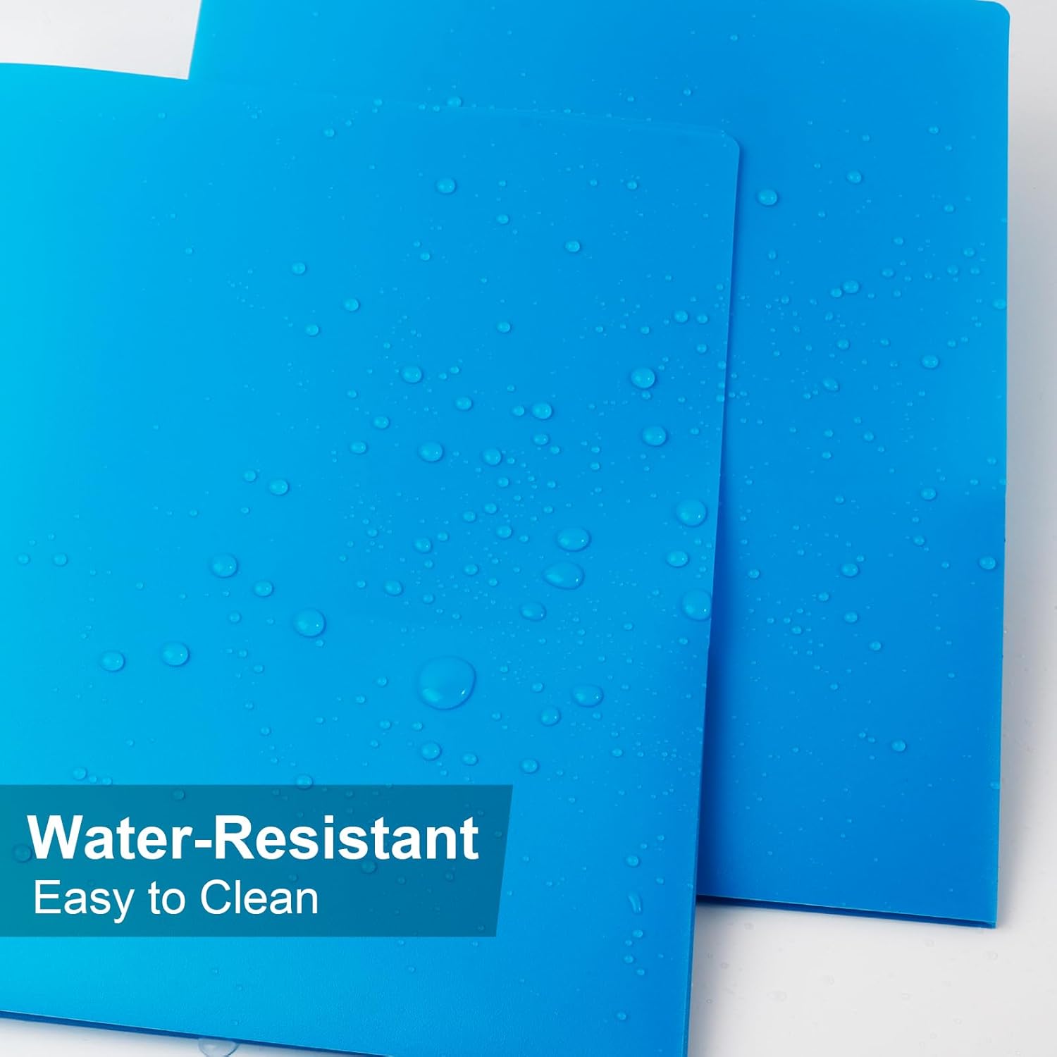Plastic Folders with Pockets,2-Pocket Poly Folders Holds 8-1/2" x 11" Paper for School/Office/Home (Lake Blue, 6-Pack)
