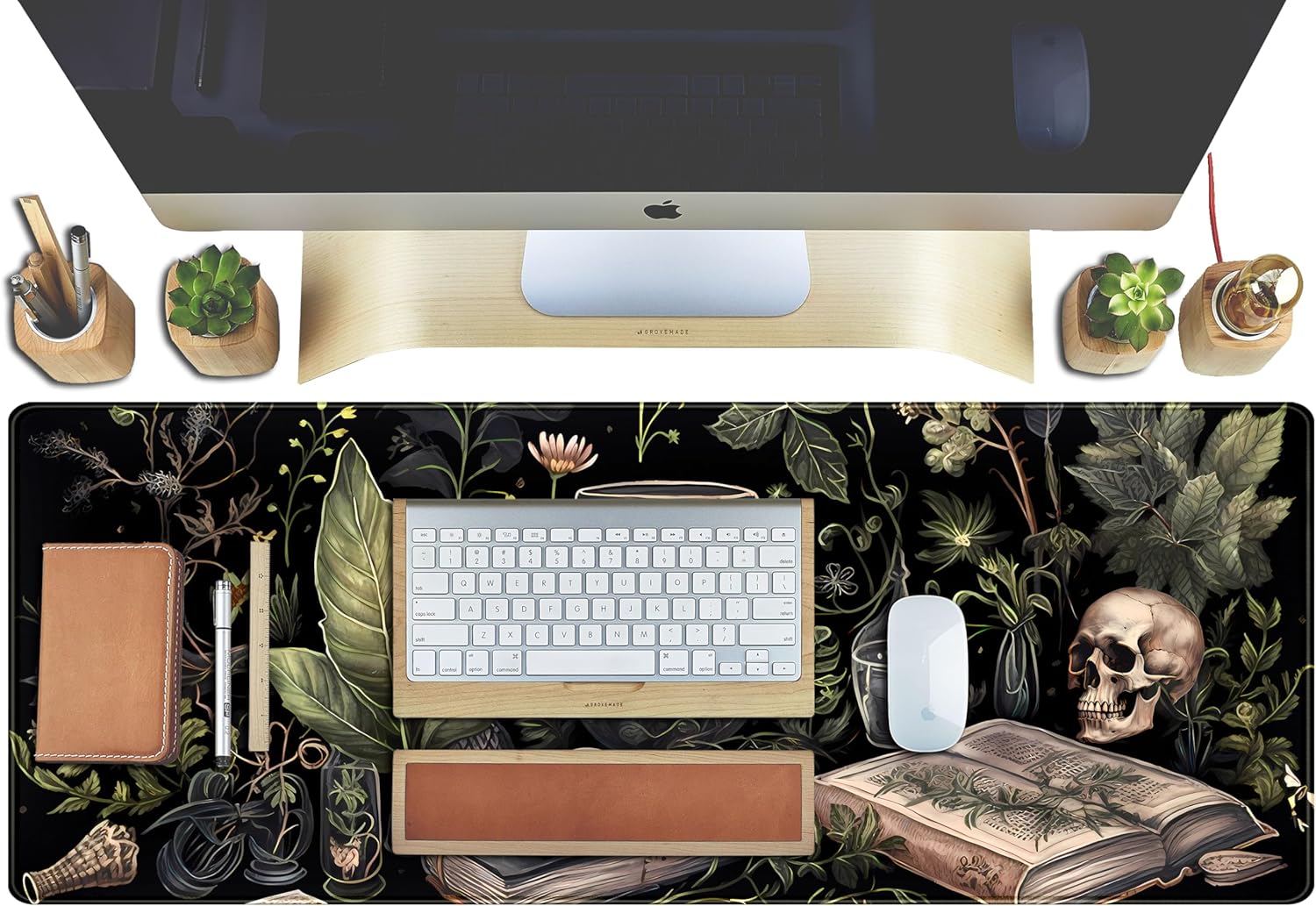 Dark Academia Desk Mat Mouse Pad XL Extended Large Gaming Desk Pad Mousepad, Mystical Green Plant Computer Laptop Keyboard and Mouse Mat, Desktop Protector Mat for Women Girl Office 31.5x11.8 in