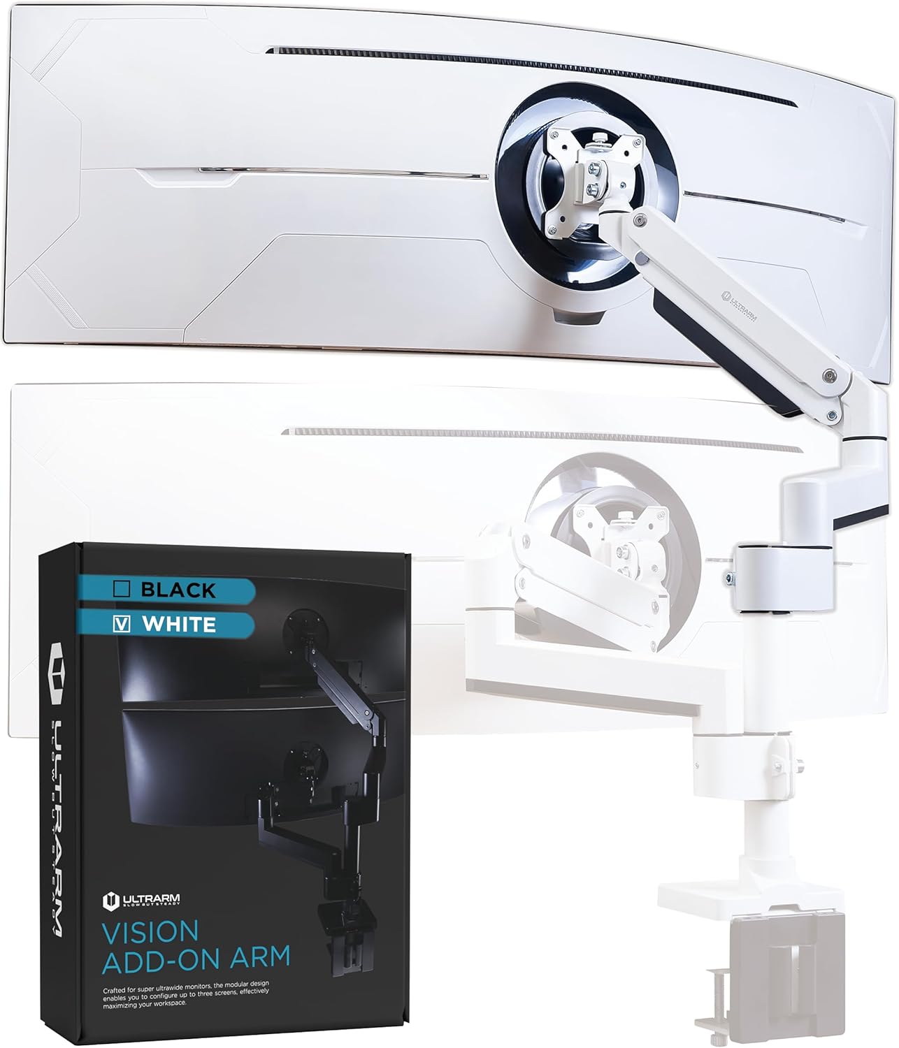 Heavy Duty Extension Arm [Accessory Only - Requires MA20PW-S Single Monitor Arm for Use] Dual 49" Vertical Stacked Monitor Mount Height Adjustable - 100x100 VESA Mount, White, MA20PW-A