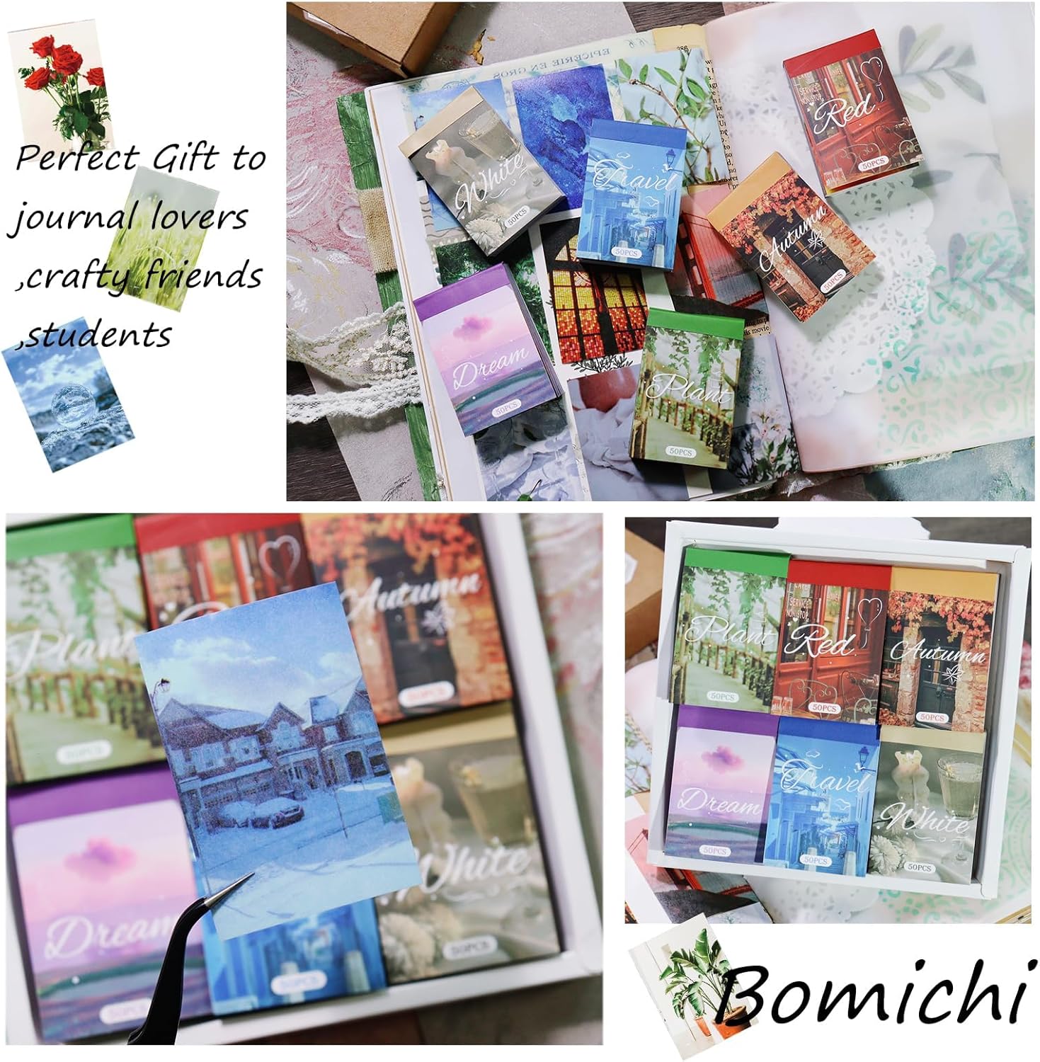 Washi Stickers, 6 Sets 300 Pcs Aesthetic Sticker Book for DIY Journaling, Journaling Supplies for Bullet Journal Art Diary Card Craft Gifts Planner Notebook.