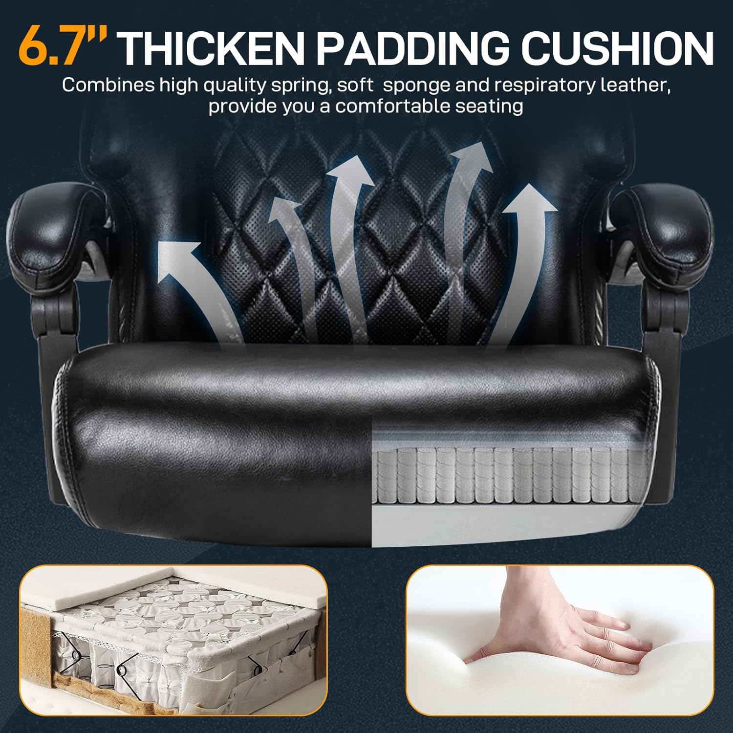 - 【Comfortable Large Office Chair】Large office chair is great for big and tall people. 23.2'' wide and 6.7'' thick spring cushion combines 22.8'' x 28.75'' plus size backrest, very comfortable for you to sit on. Plus breathable design on cushion and backrest, suitable all seasons.