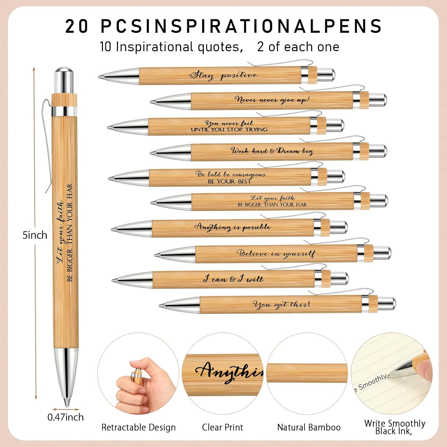 - Quality Material: our motivational notebooks adopt kraft paper cover, clear printed, not easy to break or deform, and the inner pages are made of quality paper, smooth to write and thick enough; The bamboo pens are sturdy enough, featuring black ink that is easy to dry to avoid ink bleeding, giving you a comfortable writing experience