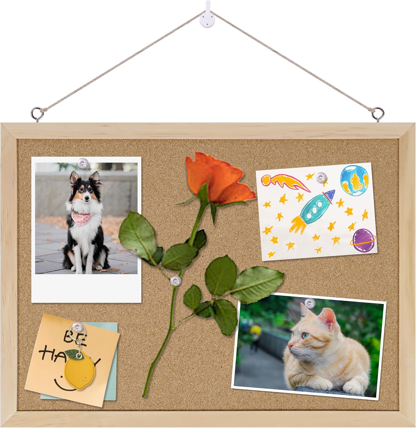 - 【Size】:The bulletin board is 11x15 inch to provide more display space, we also provide thumbtacks, hooks and strings for you to display your favorite items.