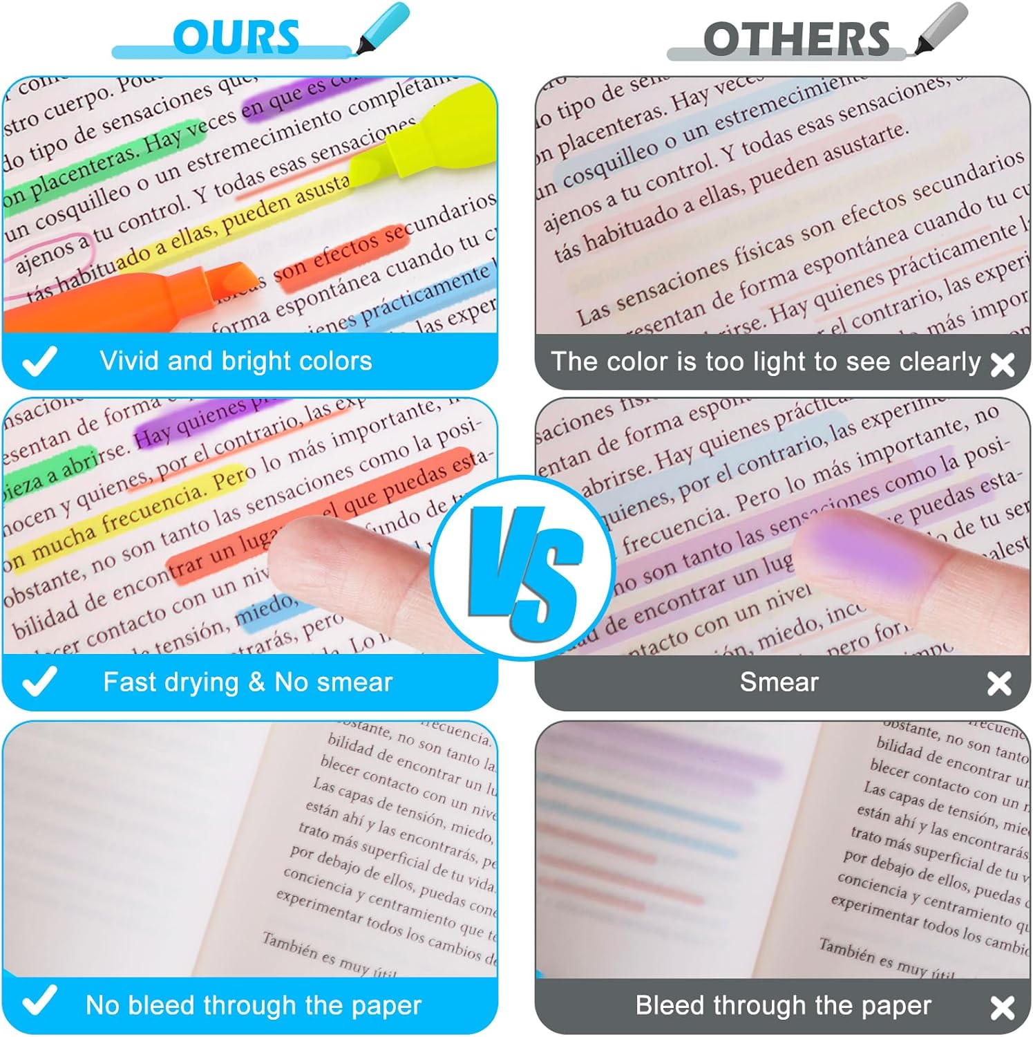 - Multi-purpose: Whether you're annotating documents, highlighting textbooks, doing extensive research and reading, or creating colorful works of art, these highlighters are versatile tools. Highlighter set is ideal for use in schools, homes, offices, etc. It is also an excellent choice for school supplies or office supplies. Non Bleed highlighters are great as gifts for family, friends and kids around you.