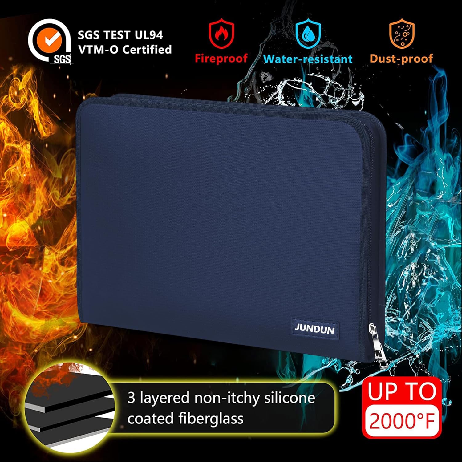 - PREMIUM MATERIALS: Secure your documents with our fireproof file organizer. Crafted from three-layered, non-scratchy fiberglass coated with silicone, it can withstand temperatures up to 2000℉. It's also passed rigorous testing (SGS Test: UL94 VTM-0 Certified) and offers high water-resistance for unexpected spills. Keep files neat and accessible with ease using our accordion file organizer. Elevate your protection today!