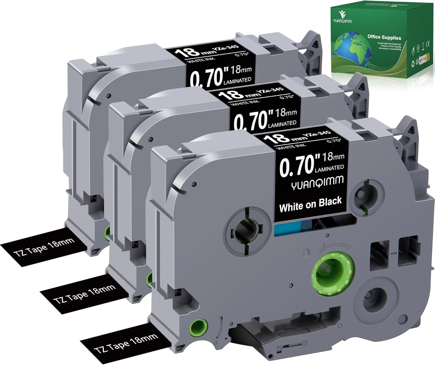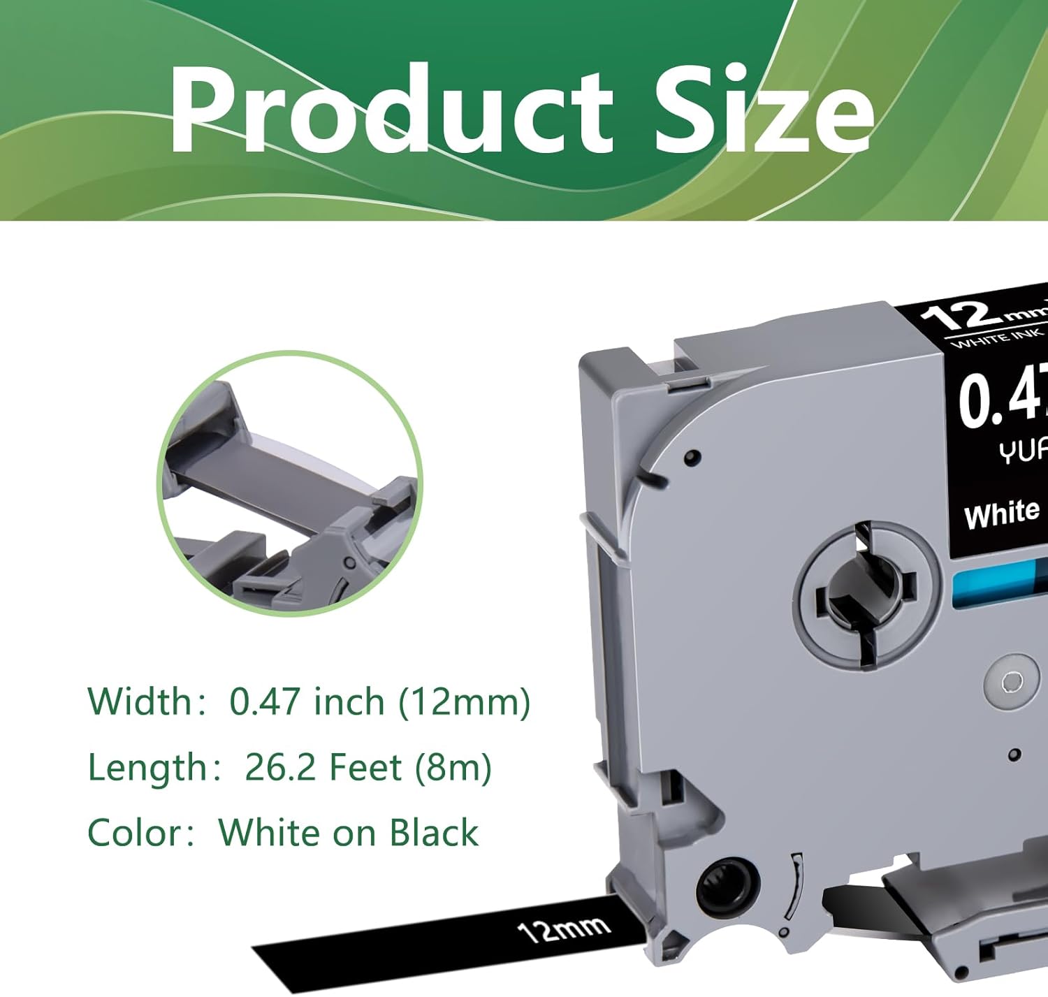 - Product Size: Width: 18mm 0.7 inch, Length: 26.2 feet (8m) for each 18mm 0.7 inch laminated black label tape