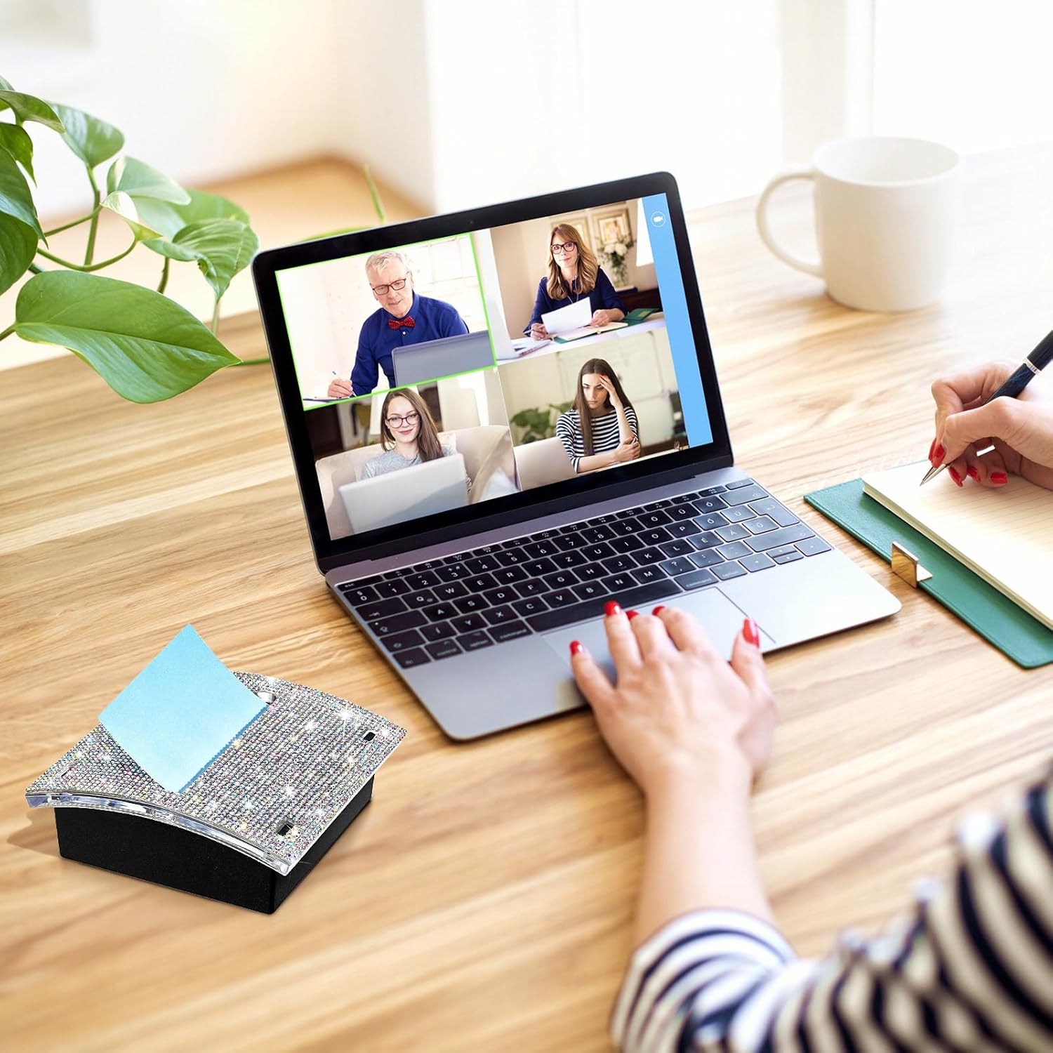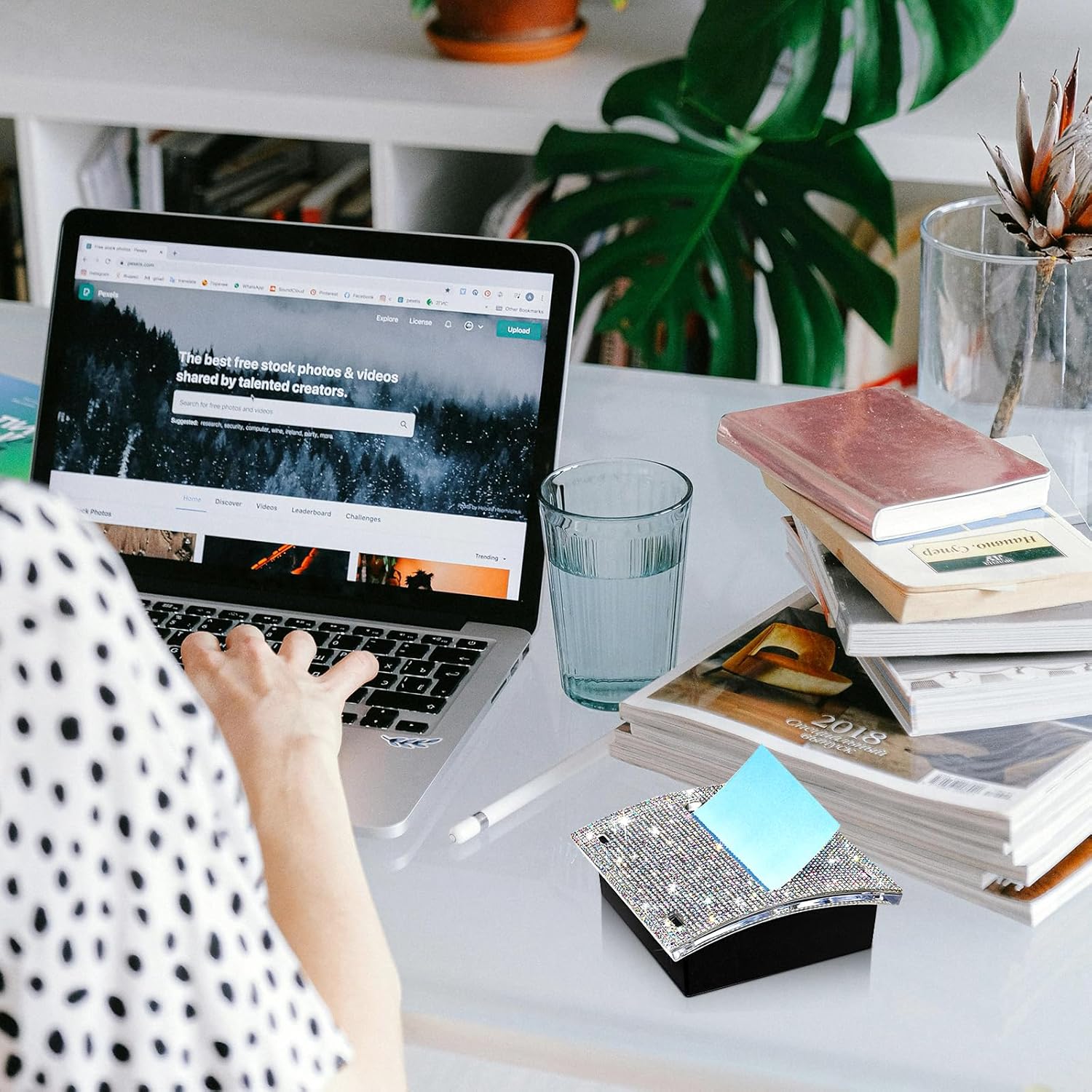 - 【Delicate Design】: The black base paired with the surface bling rhinestone makes the sticky note dispenser look stylish and elegant;The rhinestones on it are firmly attached and will not fall off easily. Meanwhile, the dazzling rhinestone holder is the focus of the desk, easy to find at a glance. It is a considerate present to your friends, relatives, colleagues, family, children.