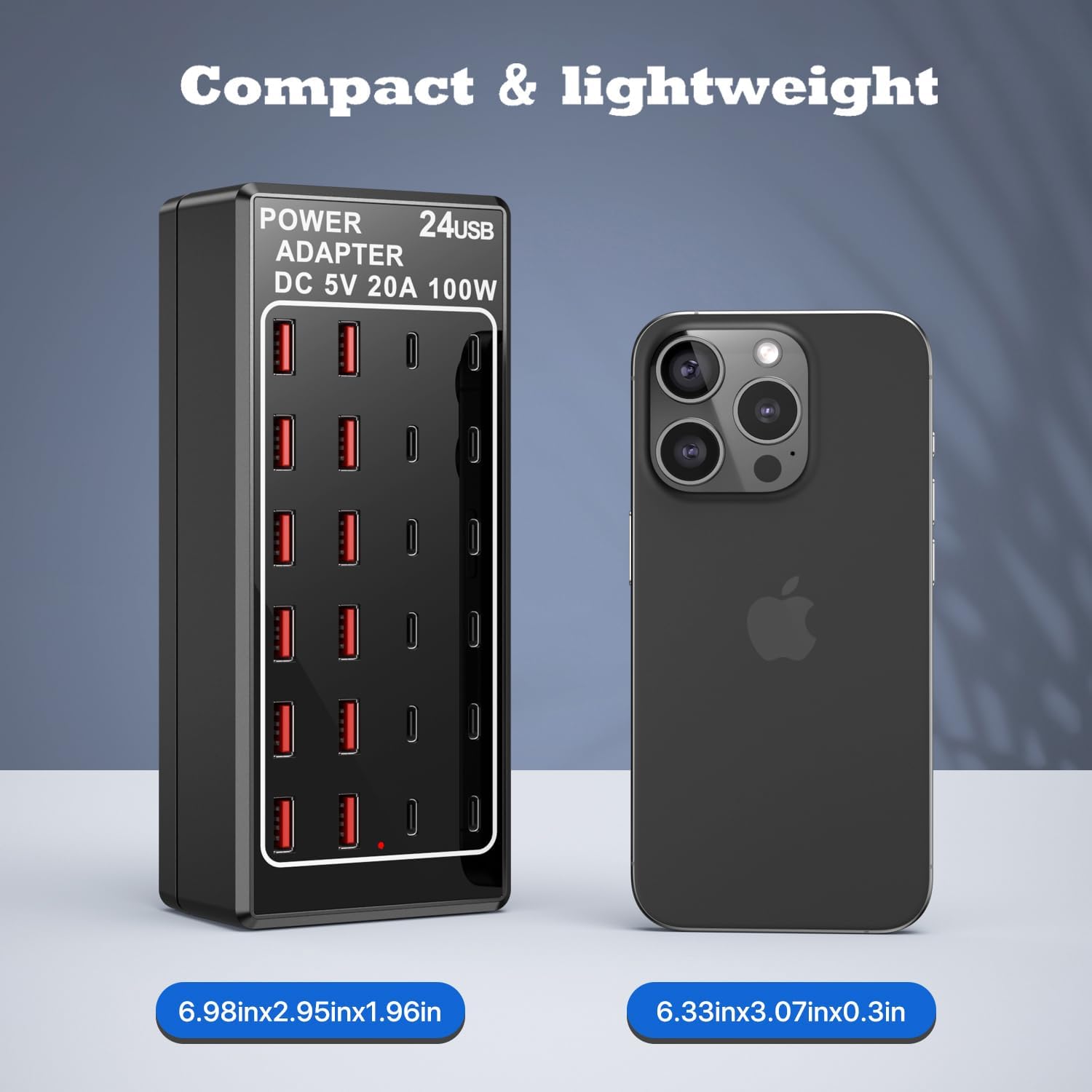 USB C Charging Station, USB Charger Station Block, 24-Port 100W (20A) Charging Block, Charging Station for Multiple Devices USB Wall Charger Power Hub,Compatible Samsung S24/iPhone/Google