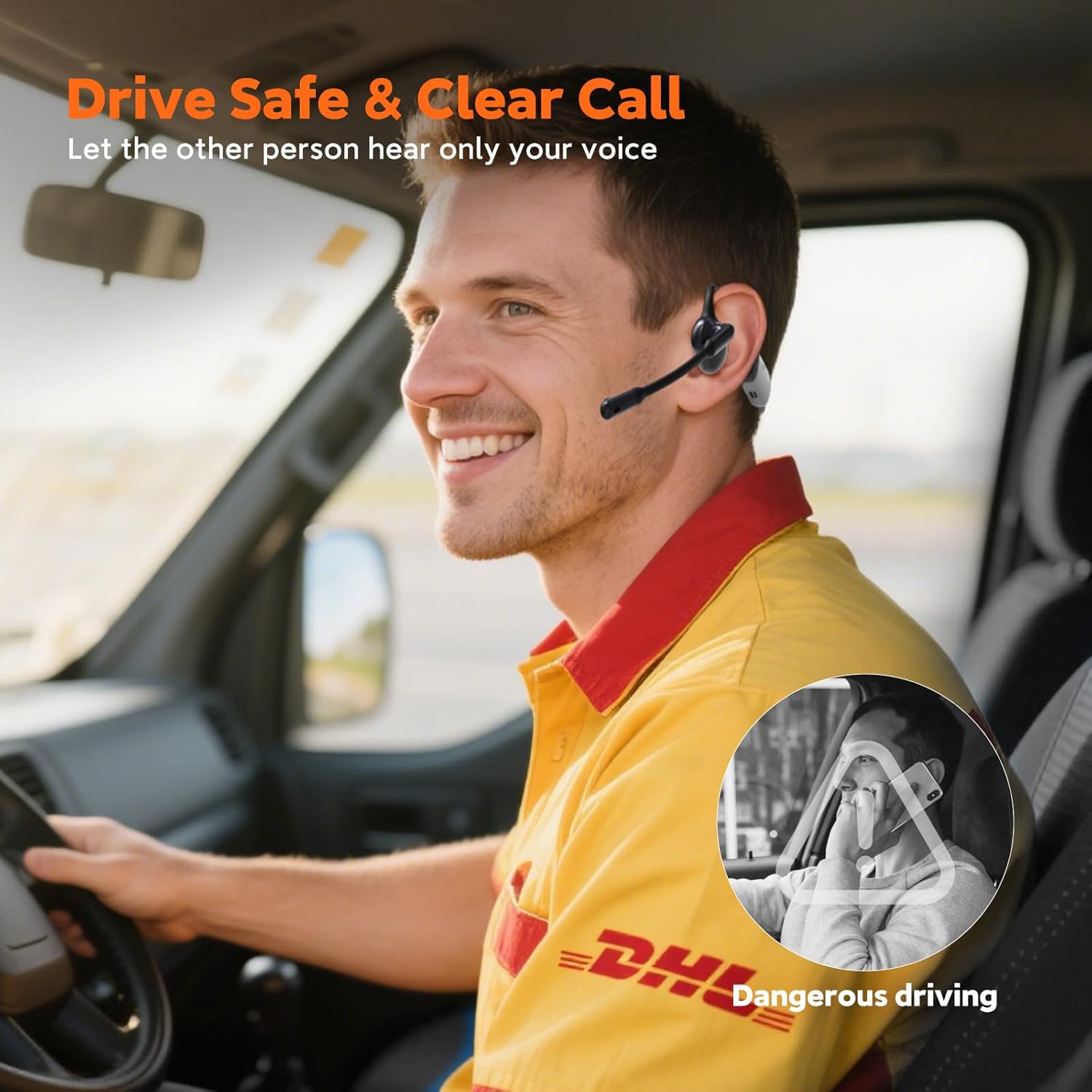 - ENC Noise Cancellation Technology: This open ear noise canceling headphones wireless headset with mic for work features hardware-level noise cancellation that excels at isolating human voices, offering superior performance compared to competitors; advanced AI technology filters out up to 50dB of background noise, ensuring the other party hears your clear, natural voice during calls or virtual meetings on platforms like Zoom, Microsoft Teams, Google Meet, Webex, and Skype, whether you're on noisy streets, traveling, or working from home