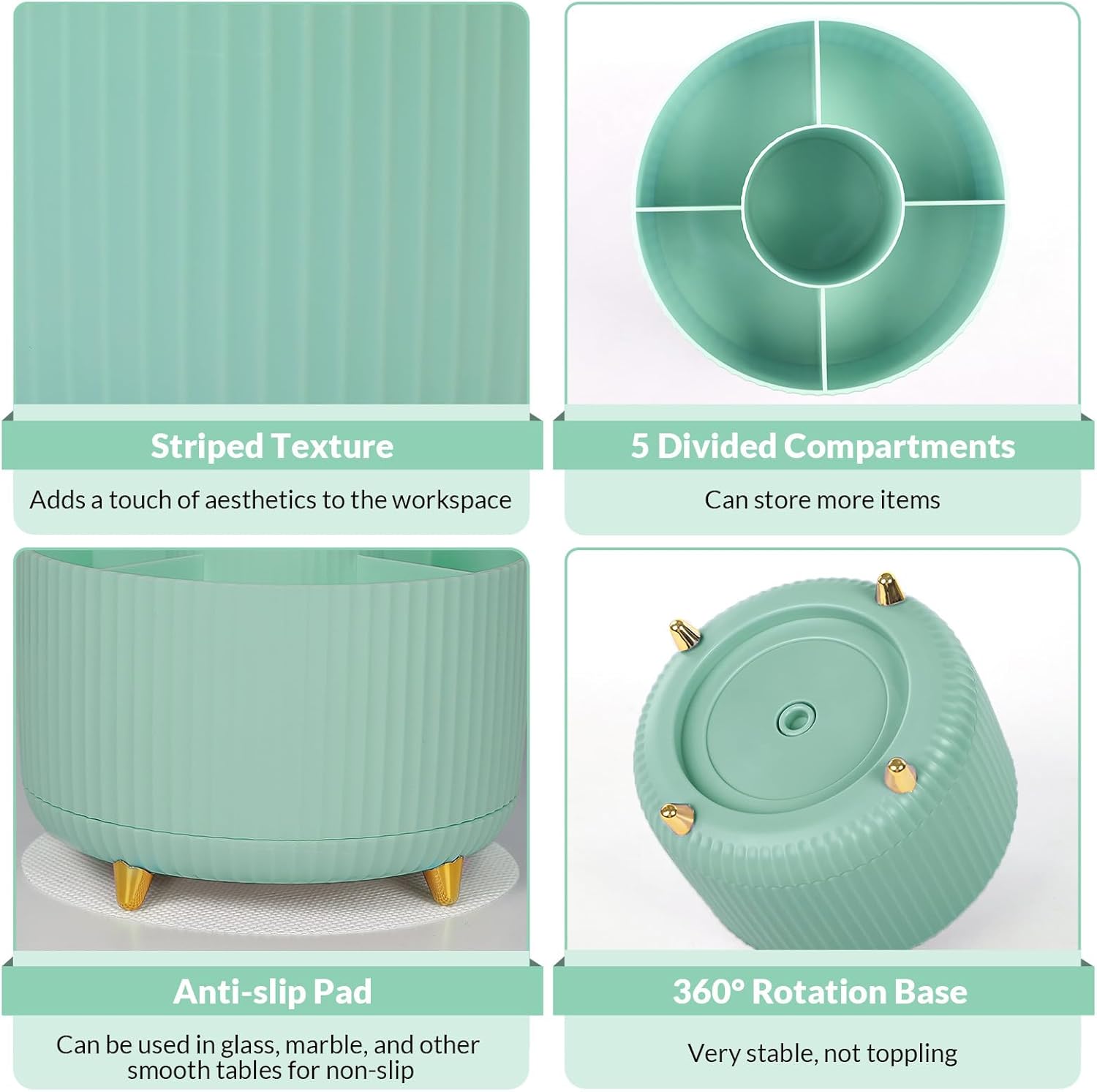 SKYDUE 360 Degree Rotating Desk Organizer, Dual-Purpose Pencil Pen Holder for Desktop, Rotating Desk Pen Organizer with 5 Slots, Pencil Cup for School, Home, Office Supplies (Bean Green)