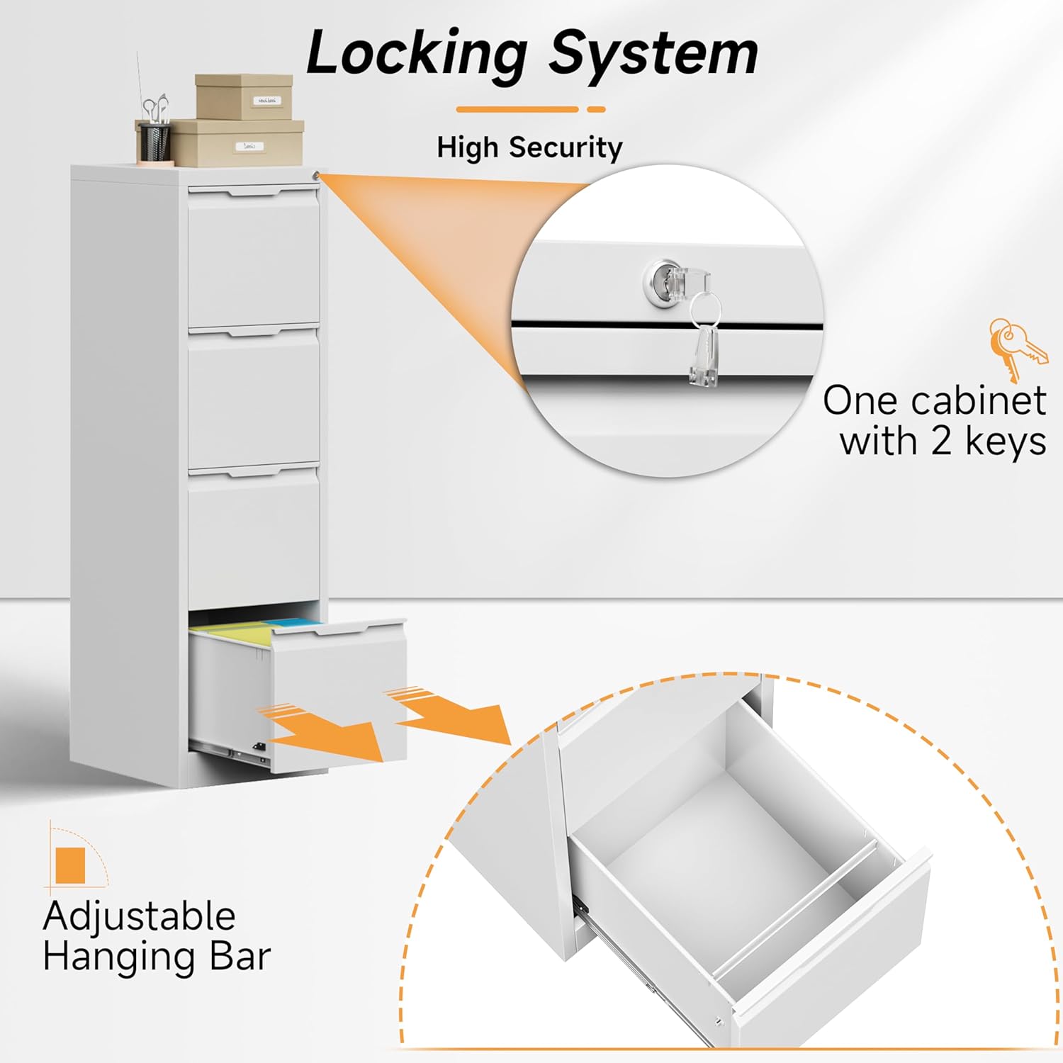 Bestoo 17.8" D Vertical File Cabinet, 4 Drawer Metal Filing Cabinets with Lock, Steel Filing Cabinet for Home Office, File Cabinet for Letter/Legal/A4/F4 Size, Easy Assemble (White)