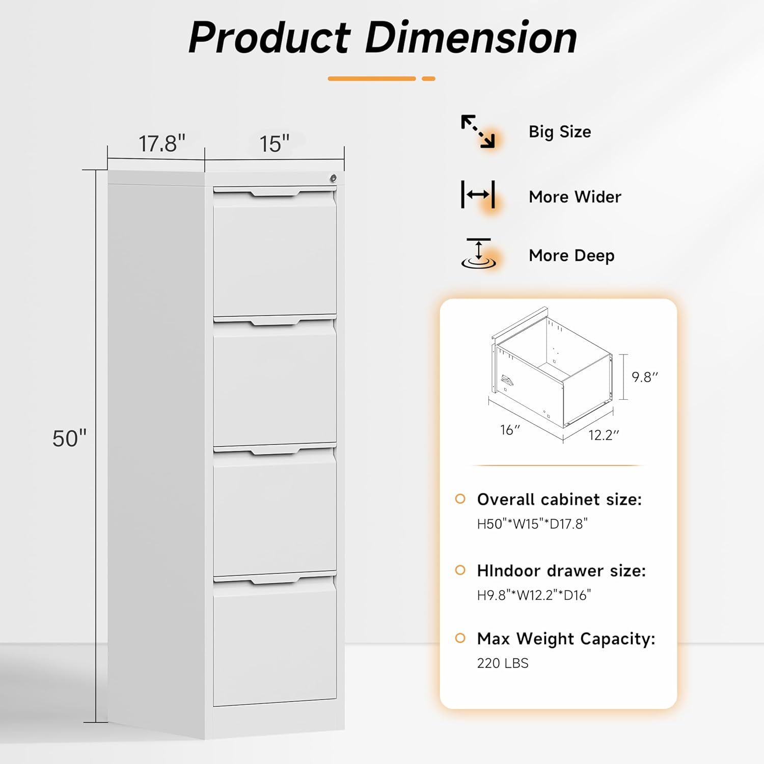 - 🧩【SUPER FUNCTIONAL VERTICAL FILING CABINET】: Our this file cabinet has four large drawers with 15.7 inches depth, which provides you with large enough storage space. And it is equipped with adjustable hanging rods to store different types of files, such as letter, legal, A4, F4 size folders. It is perfect for you to customize the way you organize your files!