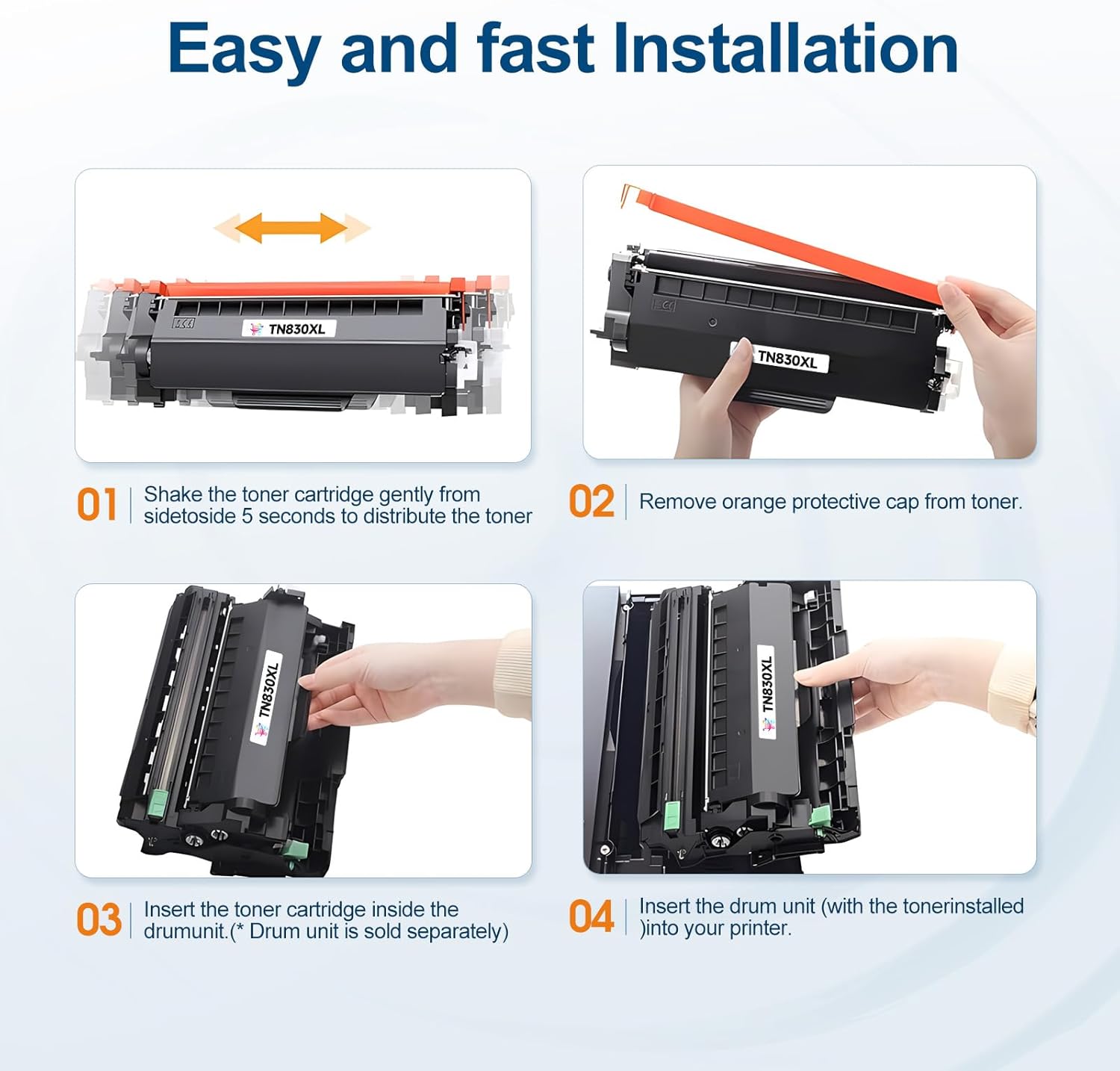 - ā Our tn830 toner cartridge is easy to install and can be easily recognized by the printer