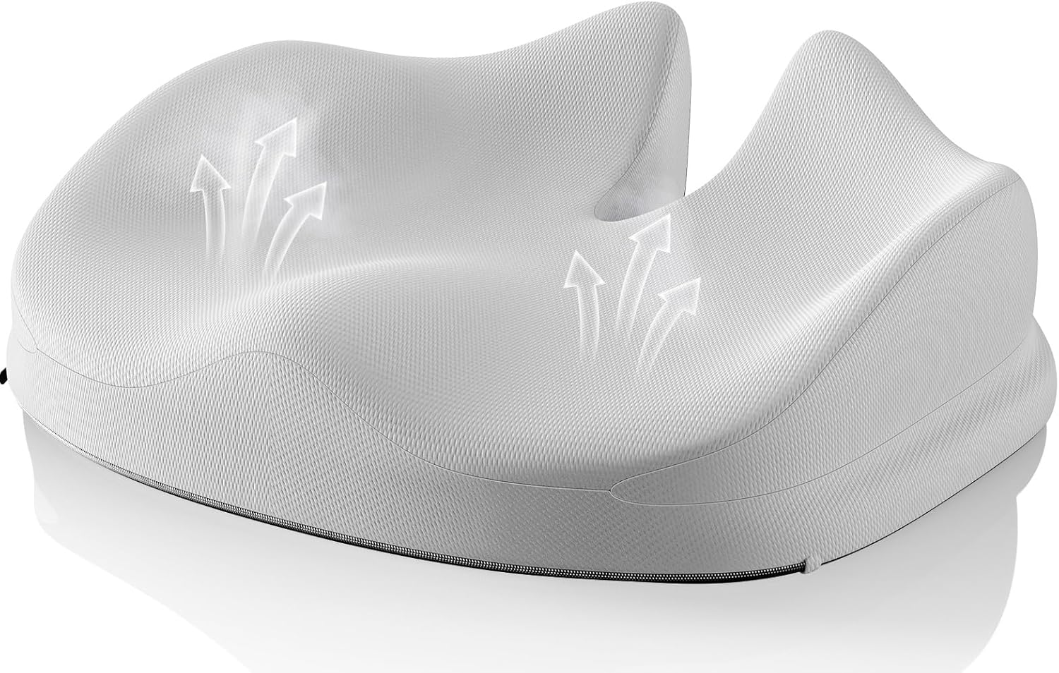 - 🧽【Ergonomic】The Ergonomic Seat Cushion is scientifically contoured to cradle your thighs & hip and help you sit upright up on any chair.