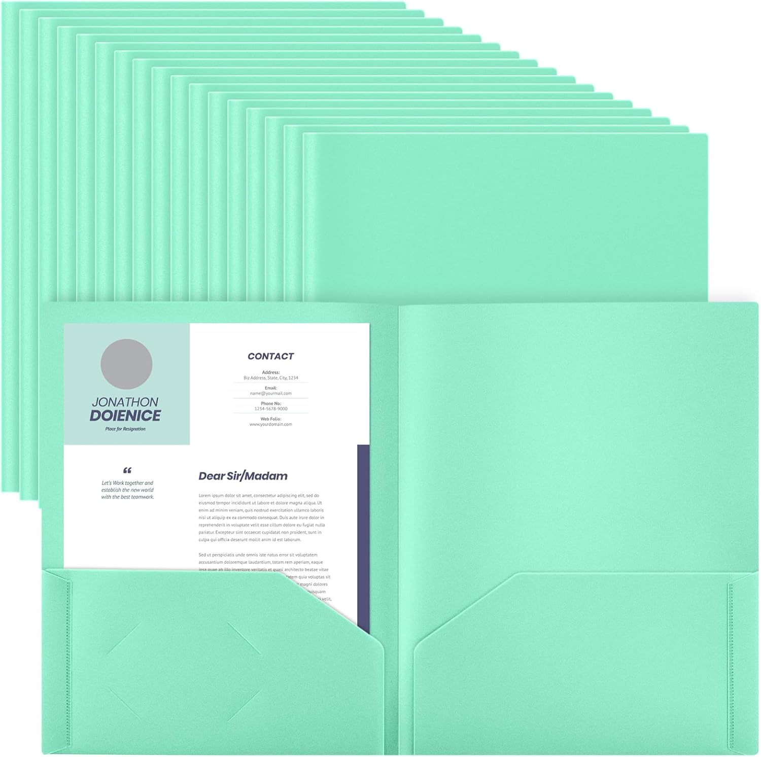 - Large Quantity: you will get 150 pieces plastic folders with pockets in light green color, each is designed with 2 pockets, fitting 8.5 x 11 inch letter size paper; Each pocket can stack 50 pages of letter size paper easily and neatly