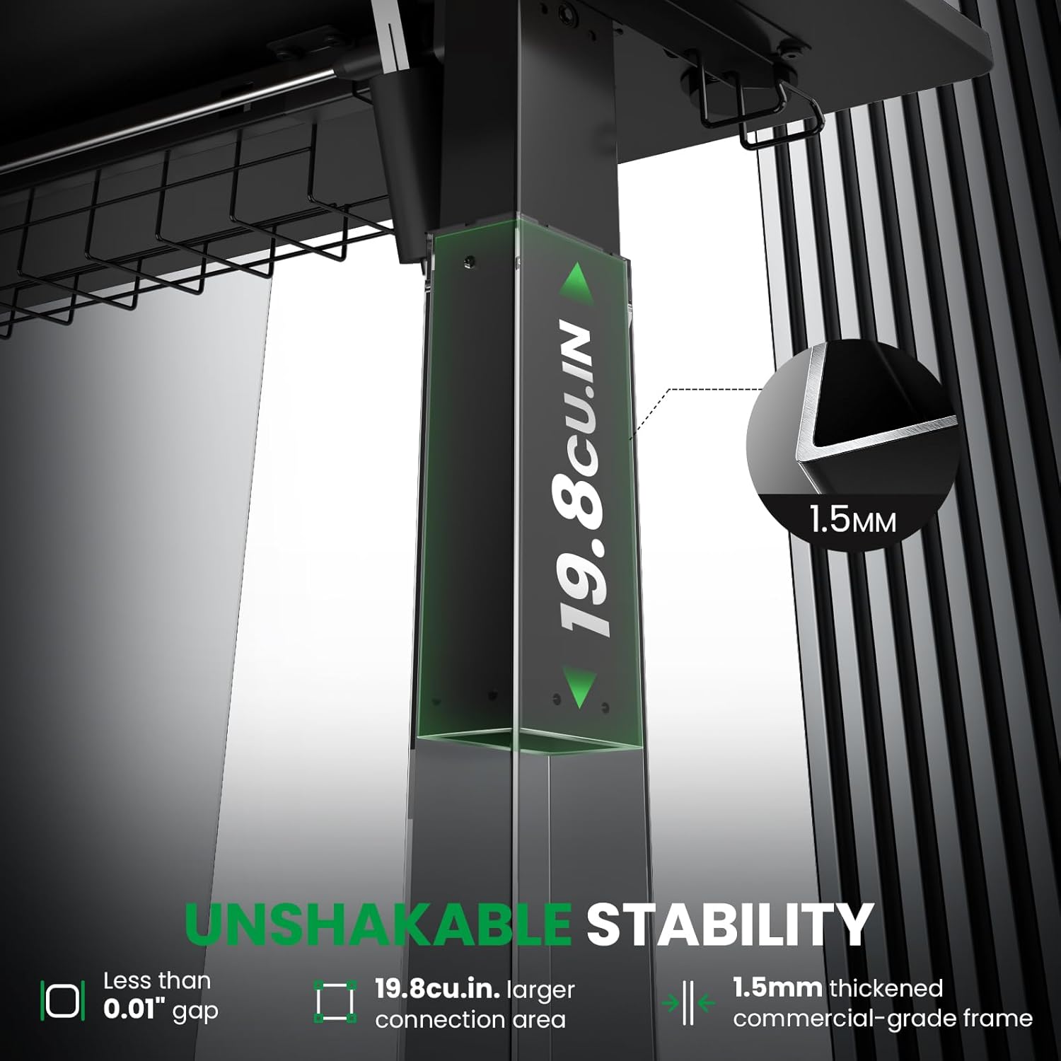 - Rock-solid Stability : Featured 19.8cu.in. larger connection area (at full height) with 1.5mm commercial-grade frame, SIAGO standing desk ensure stability and durability for long-lasting usage. Firm foundation for work at any height, eliminating any distractions from wobbling.