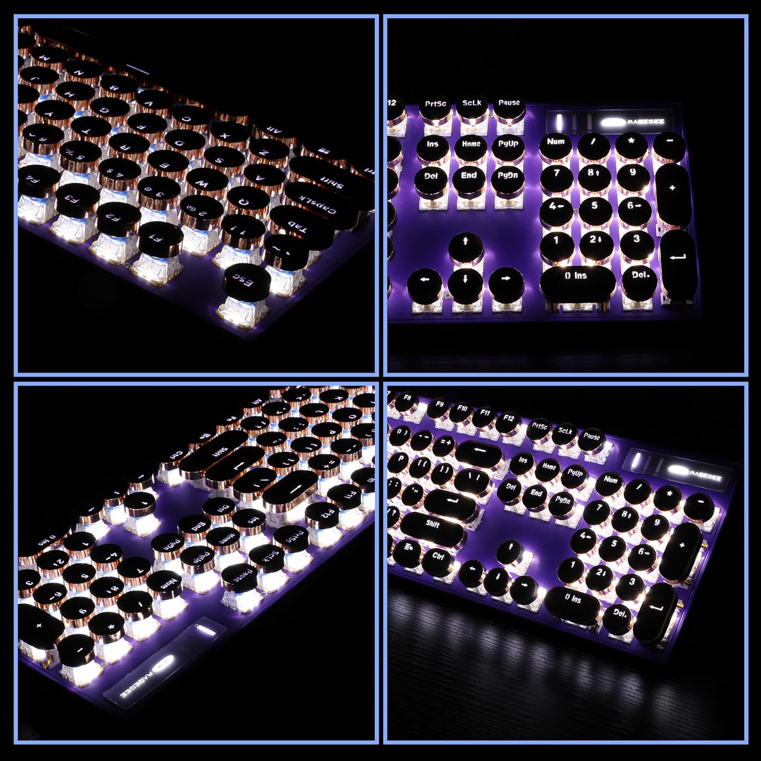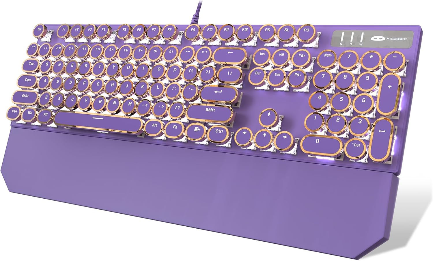 Camiysn Typewriter Style Mechanical Gaming Keyboard, Purple Retro Punk Gaming Keyboard with White Backlit, 104 Keys Blue Switch Wired Cute Keyboards, Round Keycaps for Windows/Mac/PC