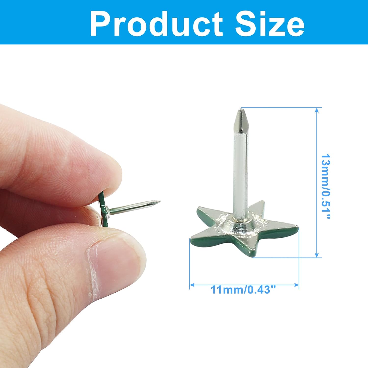 Piutouyar 150 Pcs Star Push Pins, Dark Green Upholstery Tacks Star Shaped Decorative Thumb Tacks Metal Upholstery Pins for Upholstered Furniture Cork Board DIY Projects or Home Decor 11 x 13mm