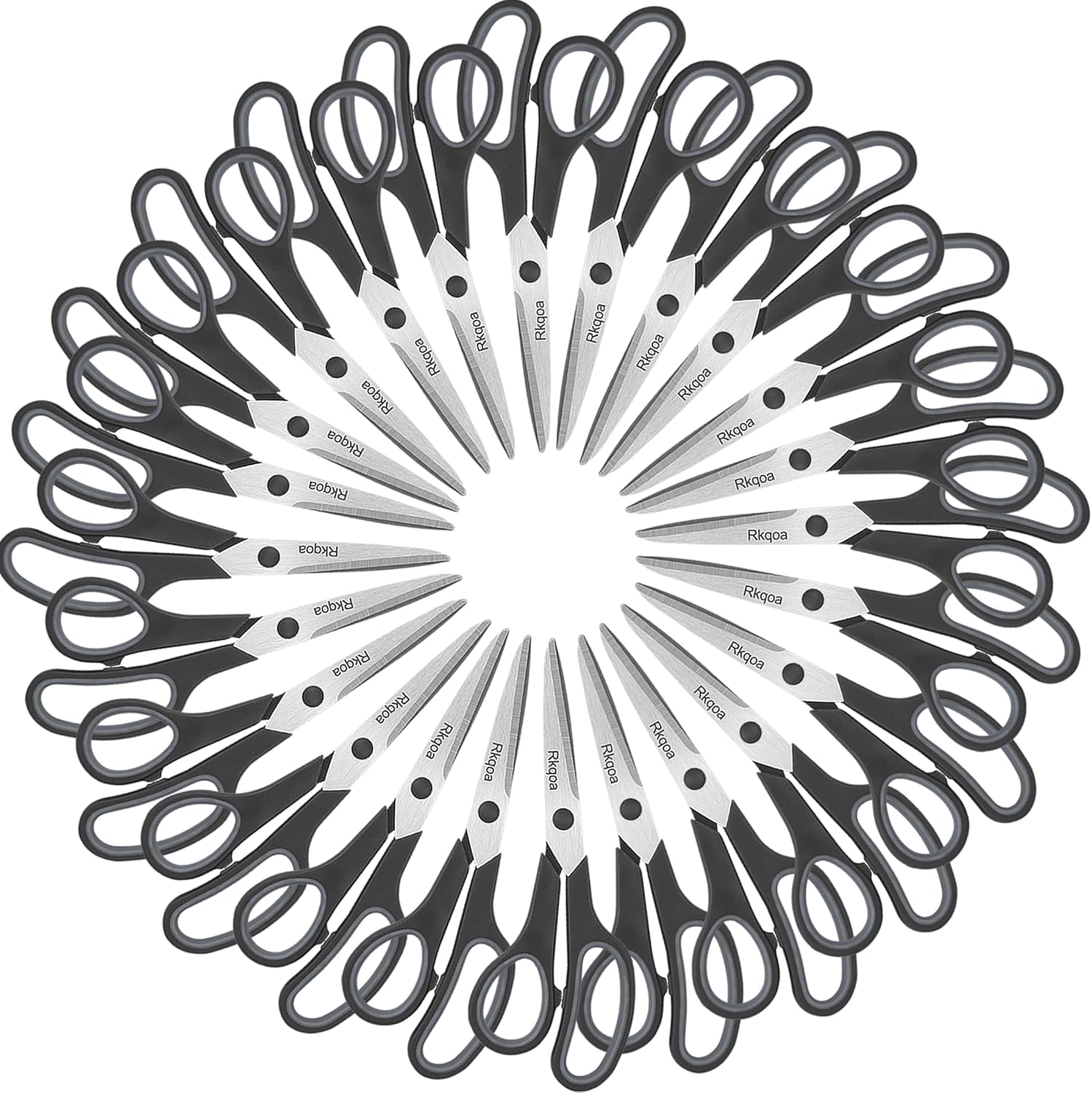 24 Black Scissors Bulk, Rkqoa 8" All Purpose Scissors Pack - Thick Sharp Shears for Office School Sewing Craft Supplies, Classroom Must have, Teacher/Class Scissor, Right/Left Handles