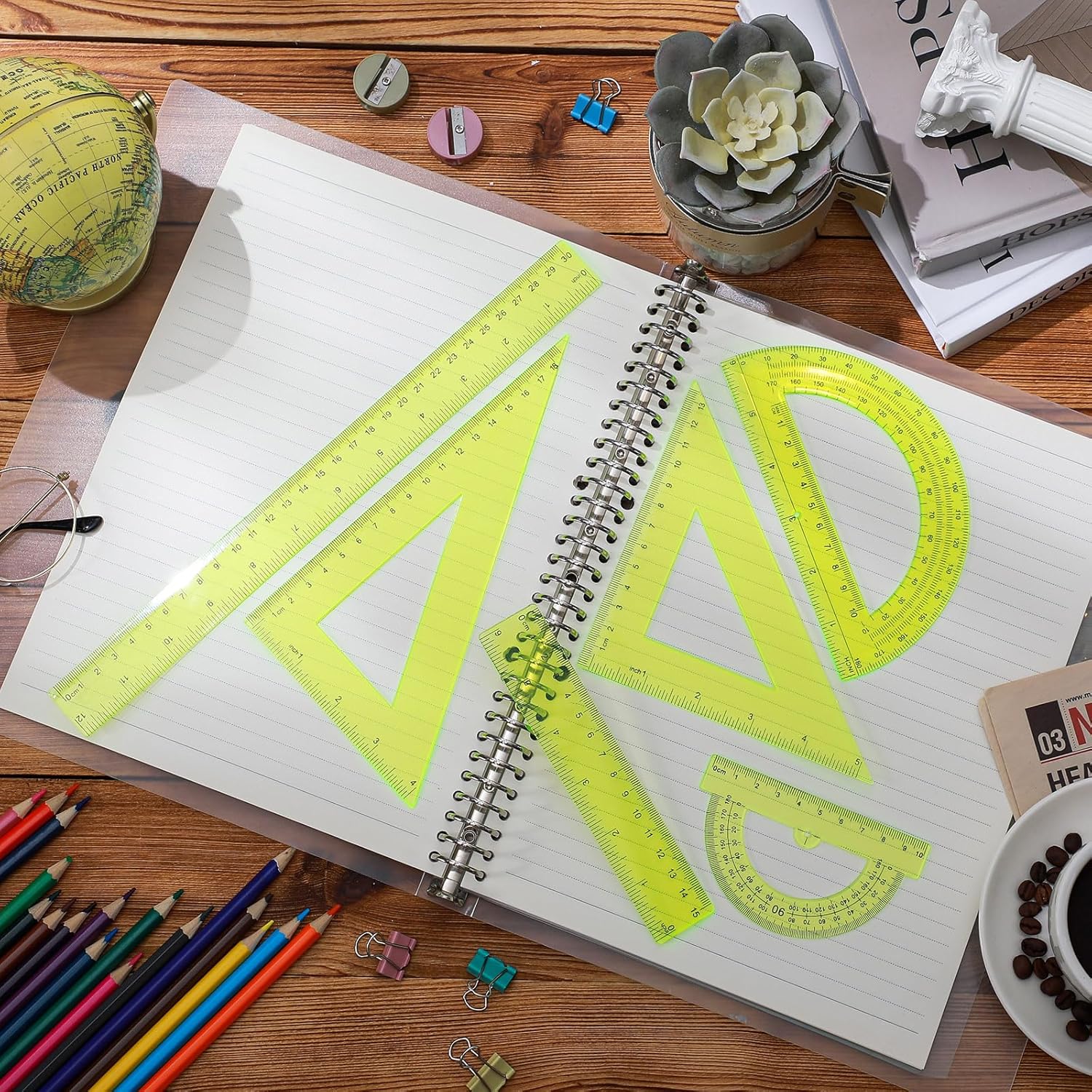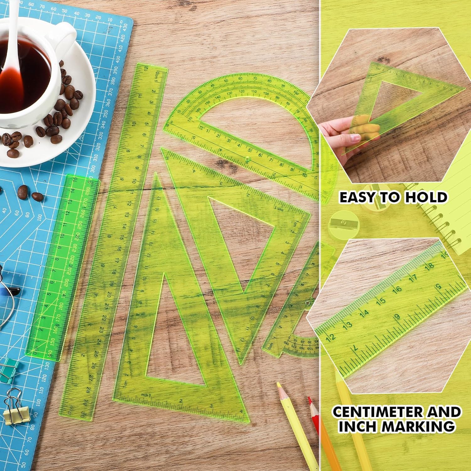 Tenare 6 Pcs Plastic Ruler Math Set Includes 12 Inch 6 Inch Straight Protractor Triangle Geometry Transparent Math Ruler Measuring Tools for School Office Home(Yellow)