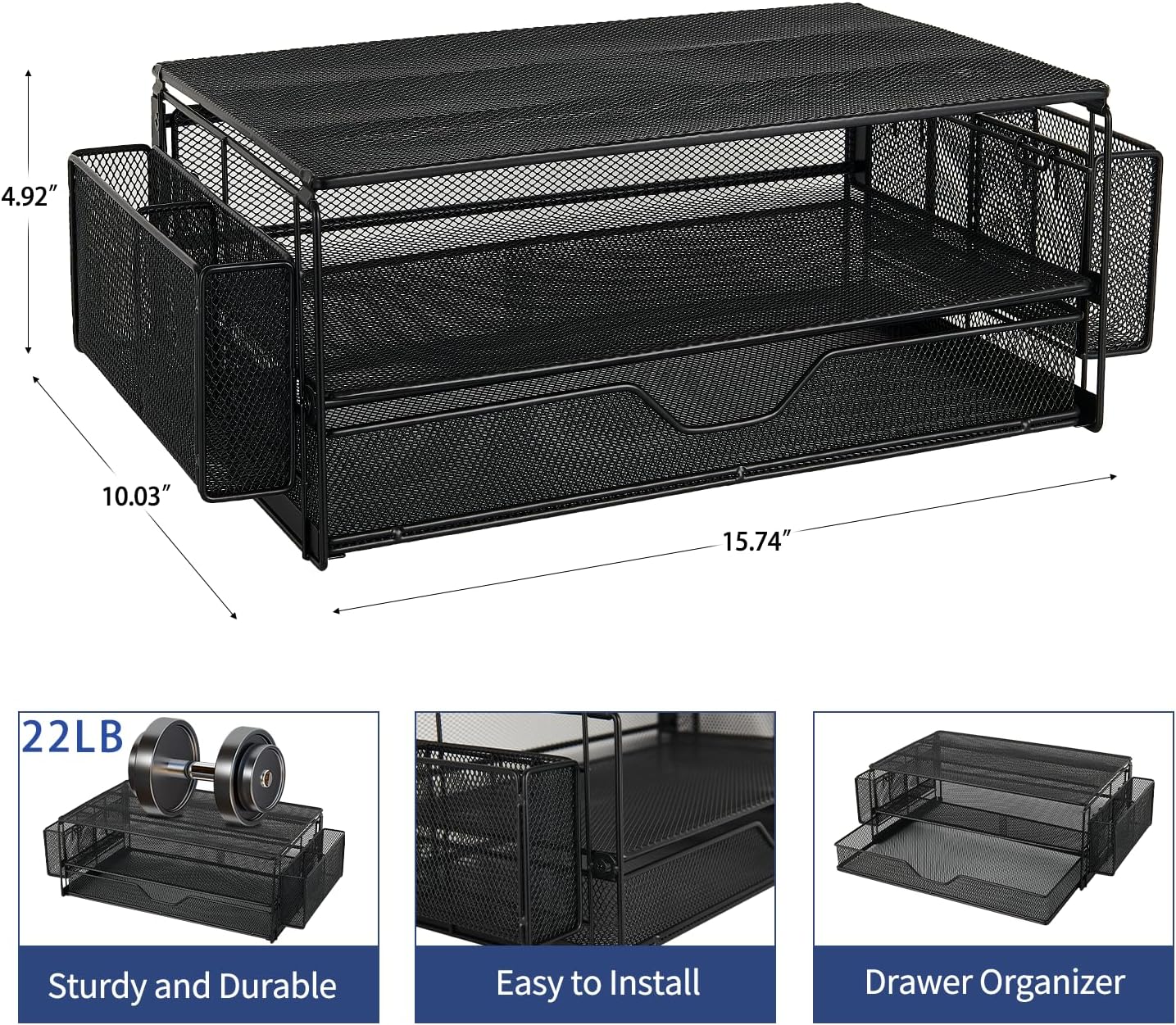 - Space Saving: Our dual-tier desktop organizer with drawer and 2 pen holders stores office supplies and office desk accessories neatly. As a purpose monitor riser, it keeps your workspace organized, helping you focus and work efficiently