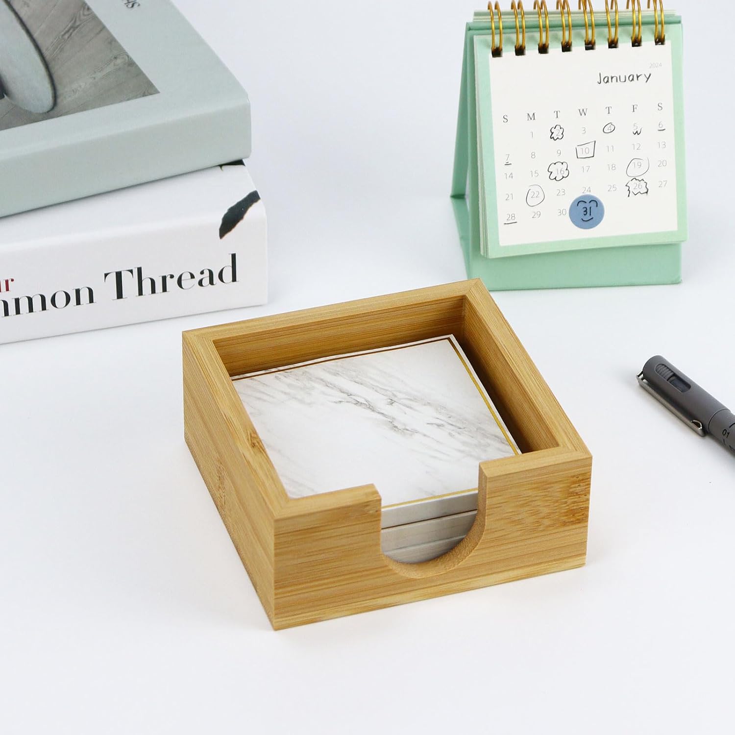 - š Material: Made with the best quality of bamboo, the wood color sticky note holder has excellent longevity and robustness. Stable on desk, good partner for organizing note pads on top of your desk.