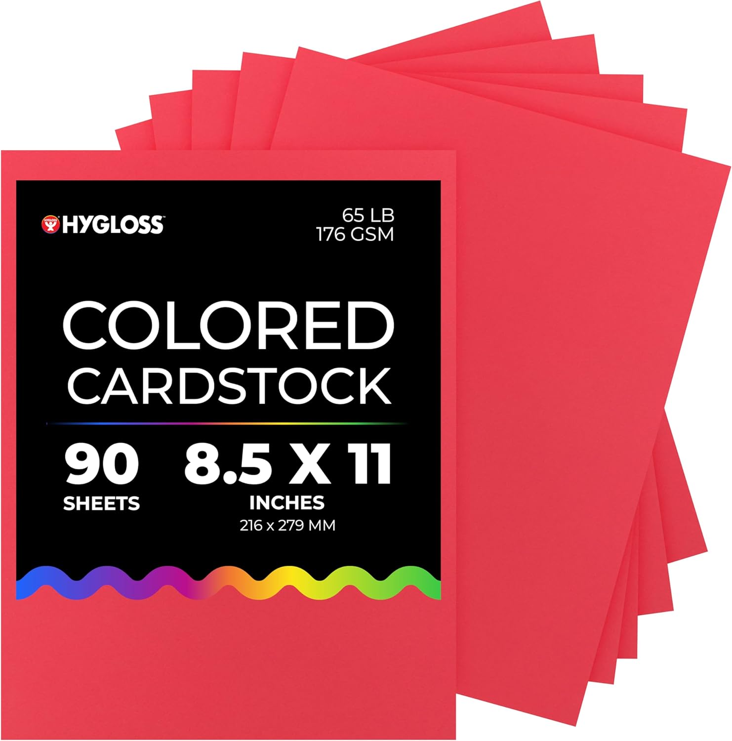 Hygloss Red Bright Colored Cardstock - 8.5x11-Inch, 90 Sheets, 65 lb/ 176 gsm, Fade-Resistant, Acid-Free Color Card Stock Paper