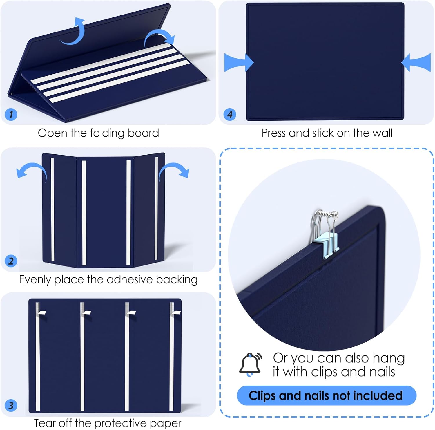 - FOLDING DESIGN: It adopts a 3-fold setting, which is portable and convenient to store without taking up space. The HOOK and LOOP FASTENER BACKING ADHESIVE adhesive design can be removed and displayed on the wall when needed. You can rest assured that the high-density board will not break after multiple tearing tests and no creases after unfolding.